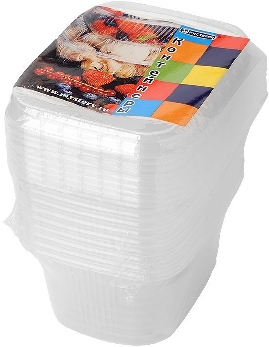 Мистерия (посуда) Контейнер с крышкой, прямоугольный, 139х102х56 мм, 500 мл, полупрозрачный, 5 штук