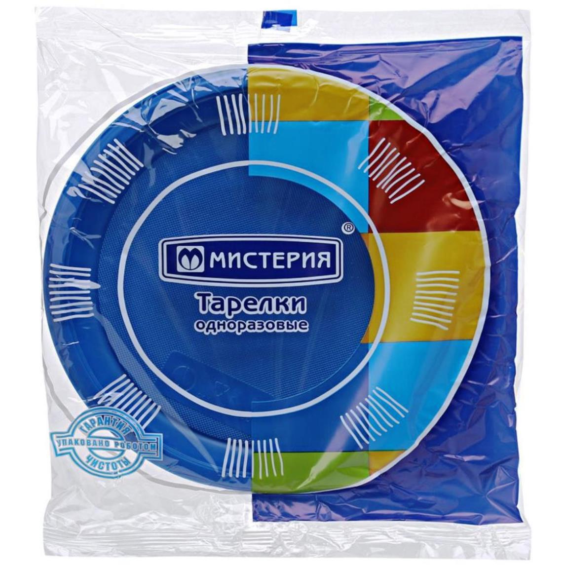 Тарелки одноразовые диаметр 17 см синие 60 штук Мистерия