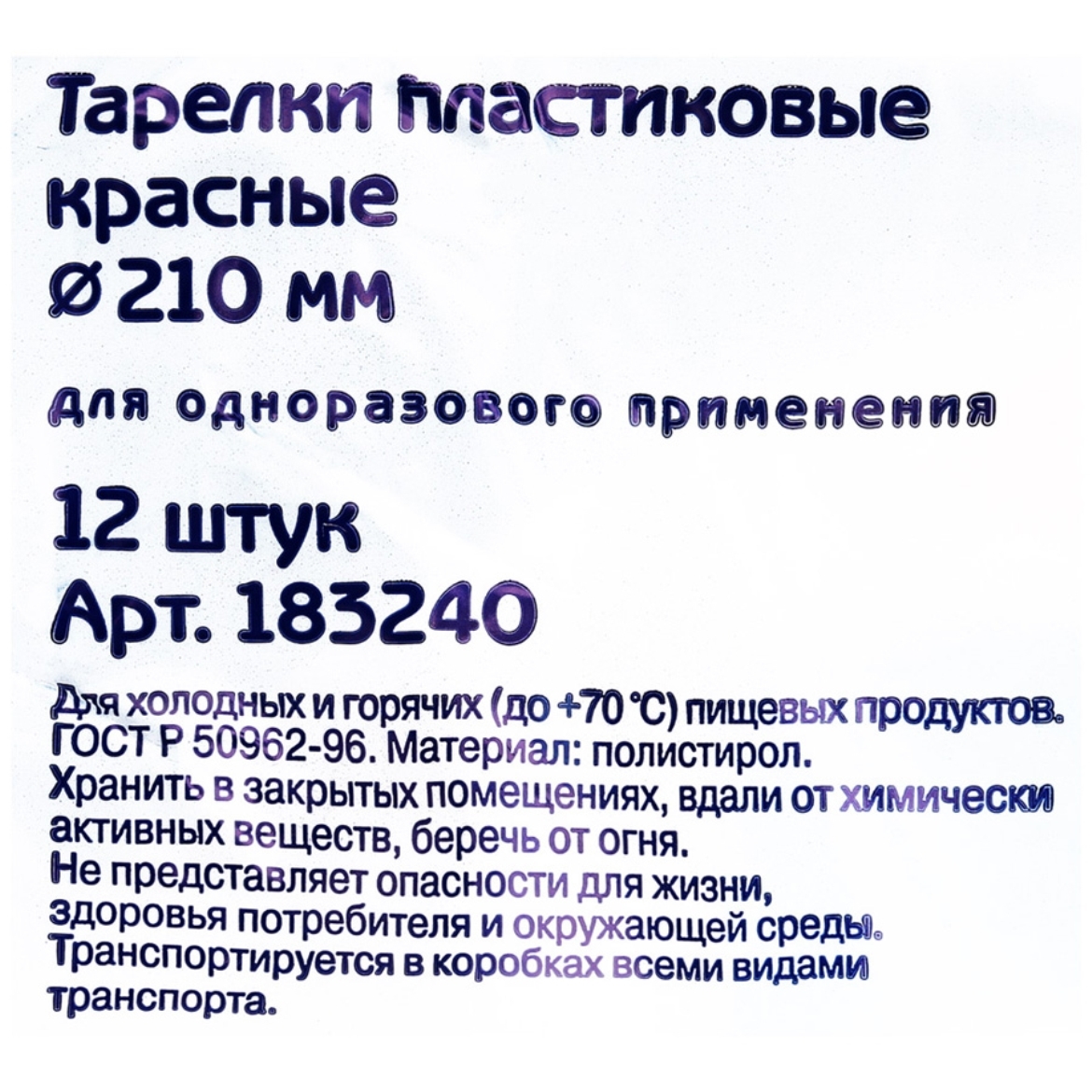 Тарелки одноразовые диаметр 17 см красные 60 штук Мистерия