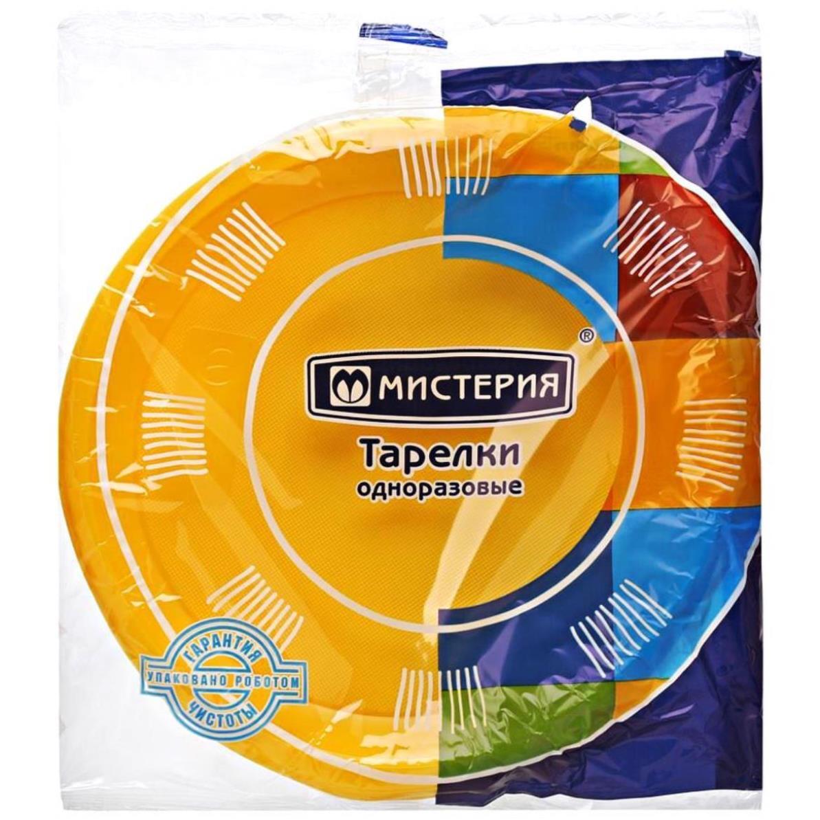 Тарелки одноразовые диаметр 21 см желтые 60 штук Мистерия