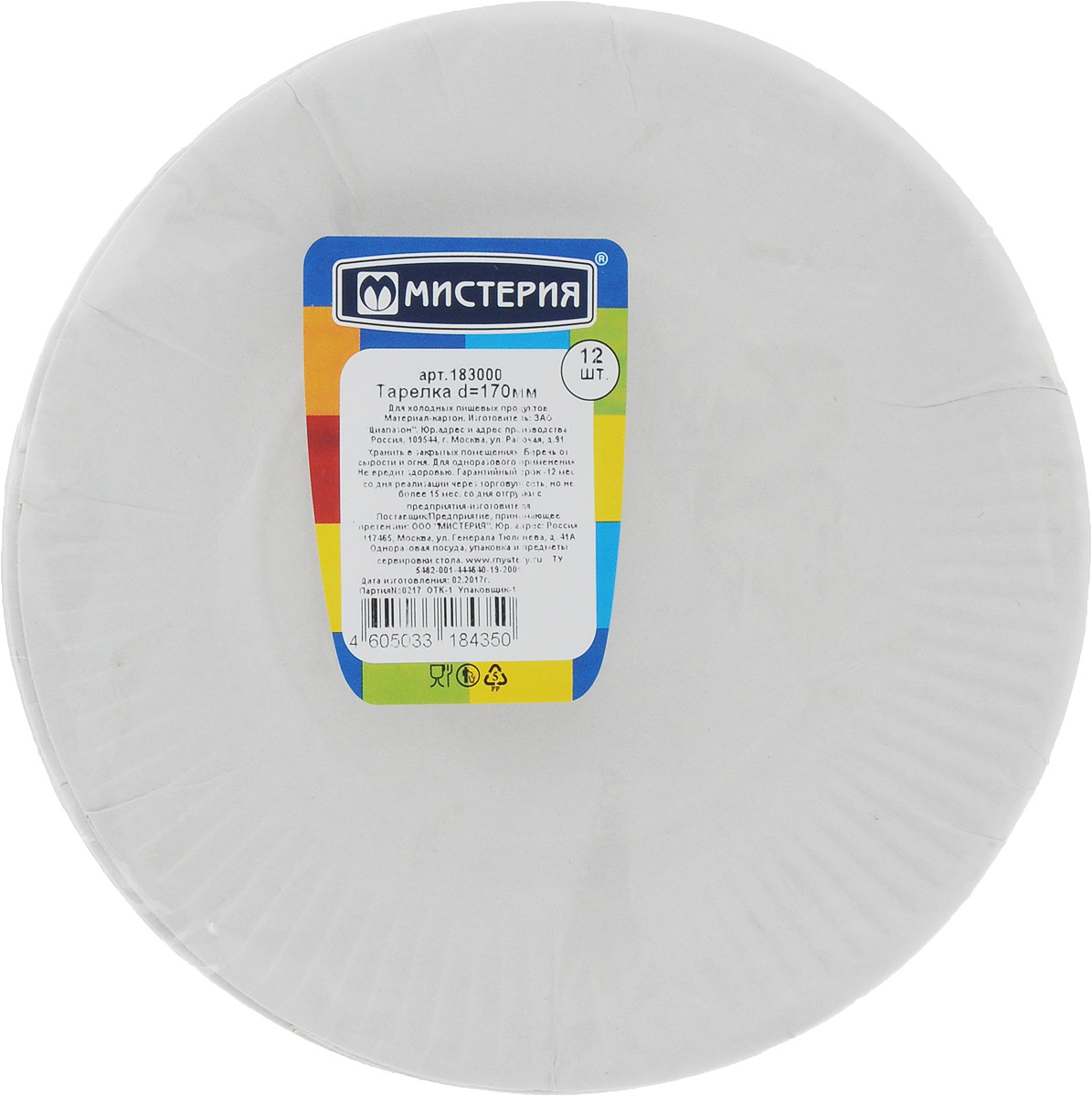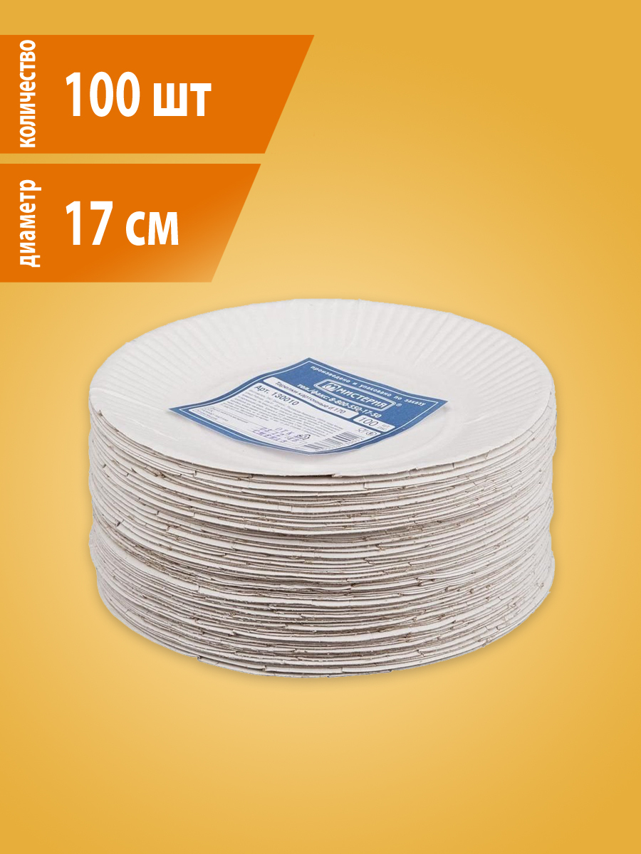 Тарелка десертная, Набор тарелок Мистерия, 100 шт, Мелованный картон, диаметр 17 см
