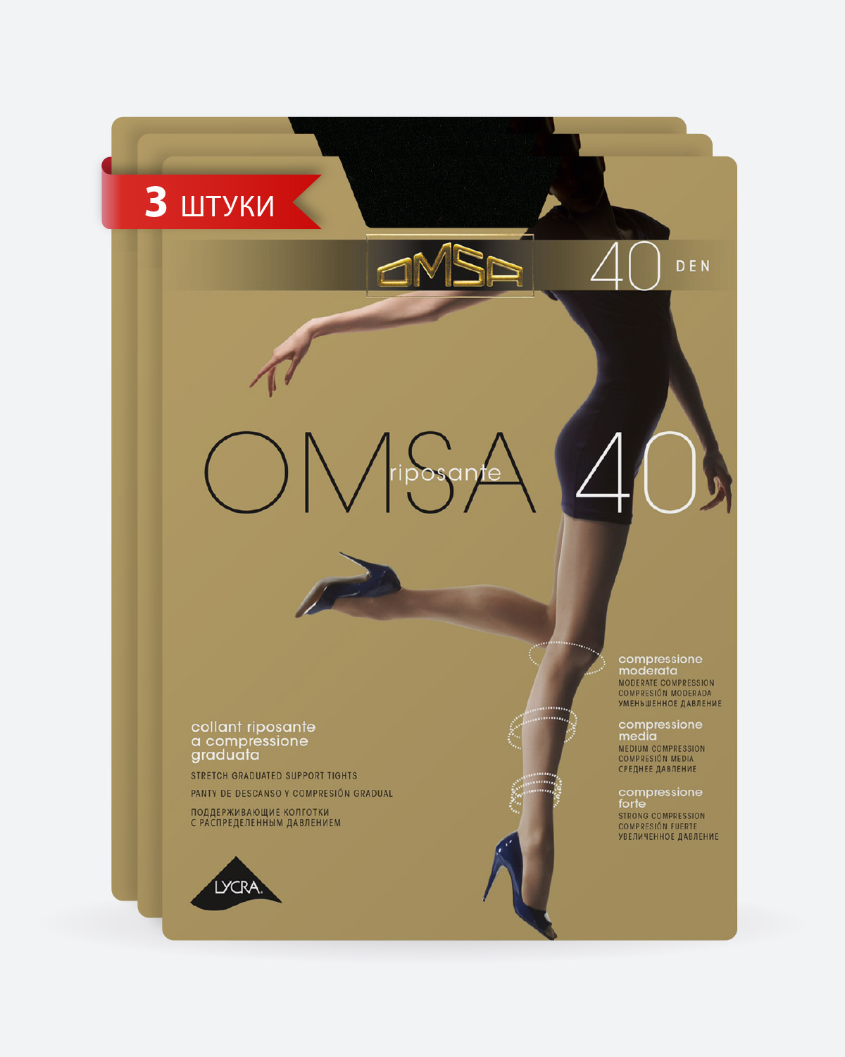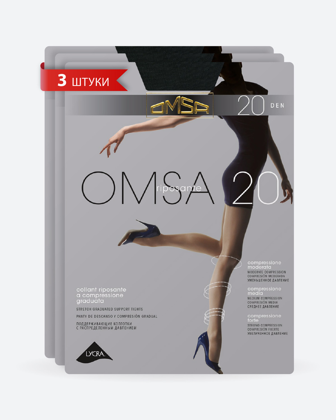Колготки Omsa Attiva Nero (Черный), 20 den, 3 шт