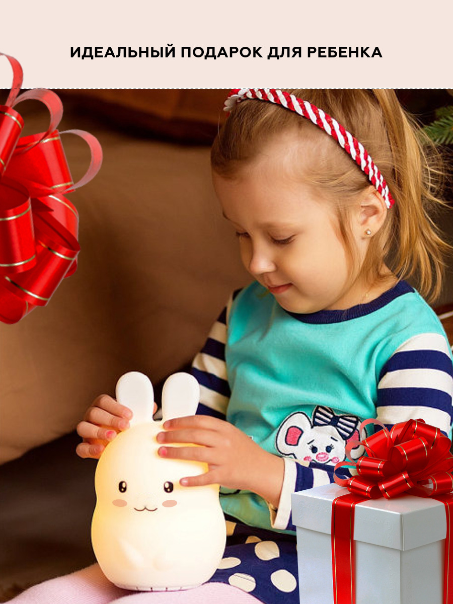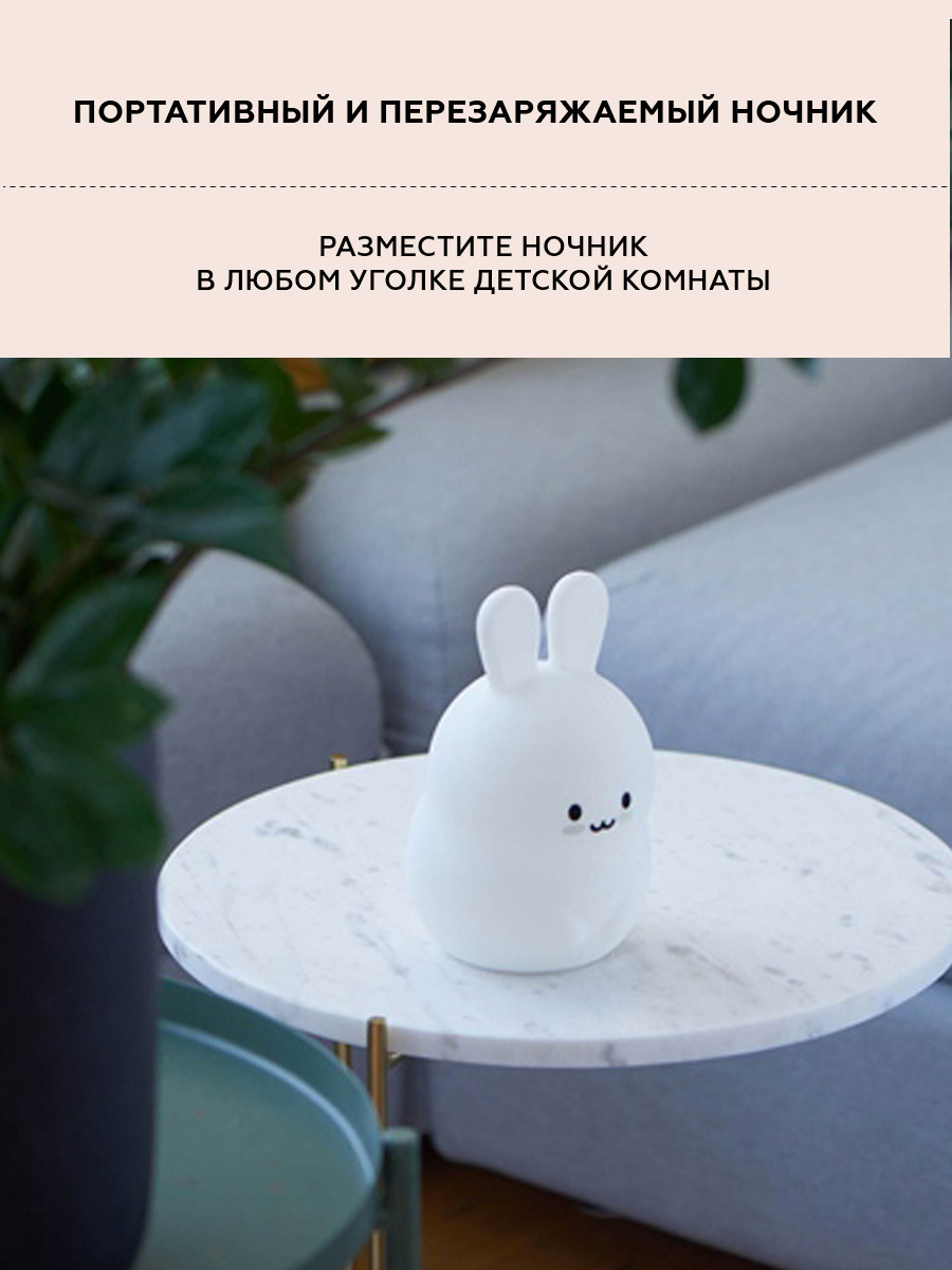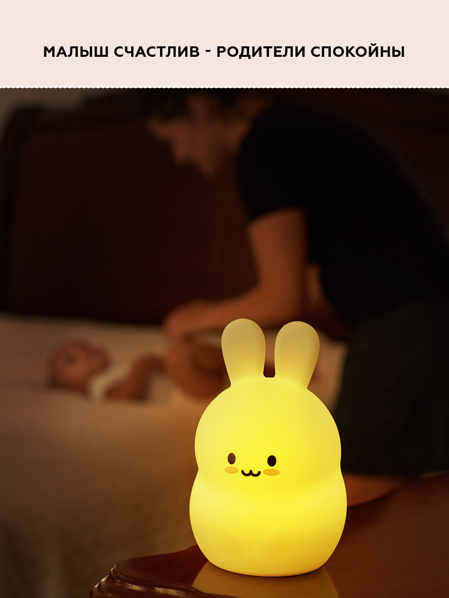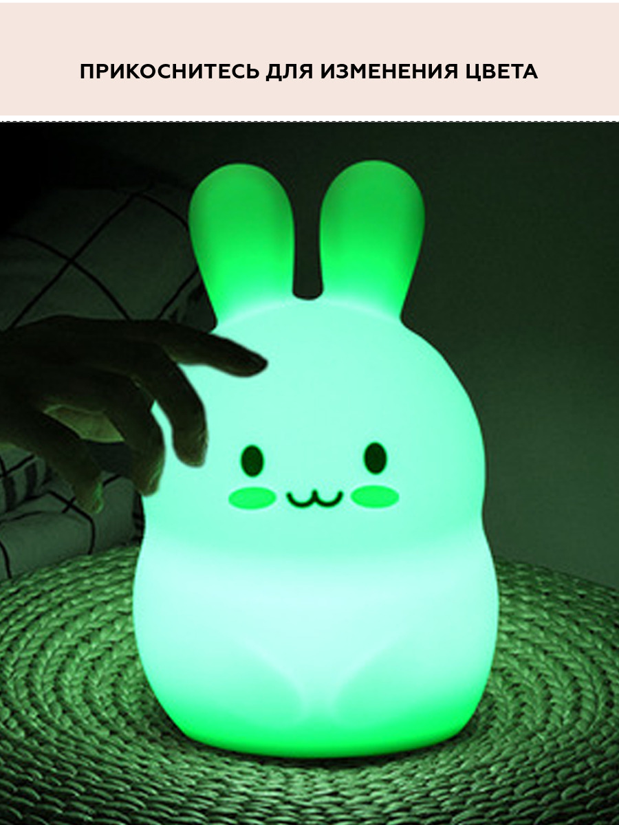 Ночник детский для сна, силиконовая игрушка Заяц, 9 цветов, 3 режима работы, пульт управления