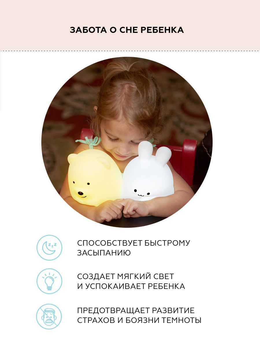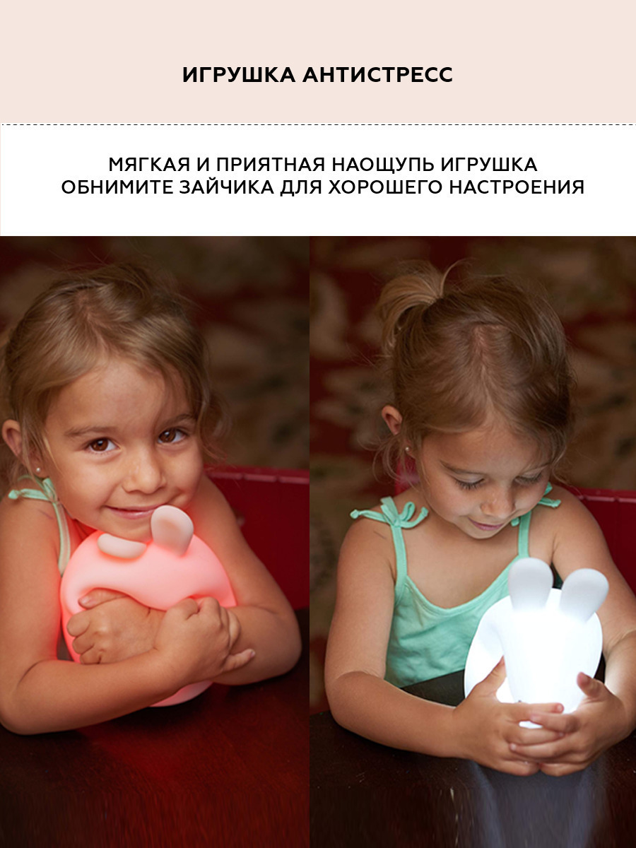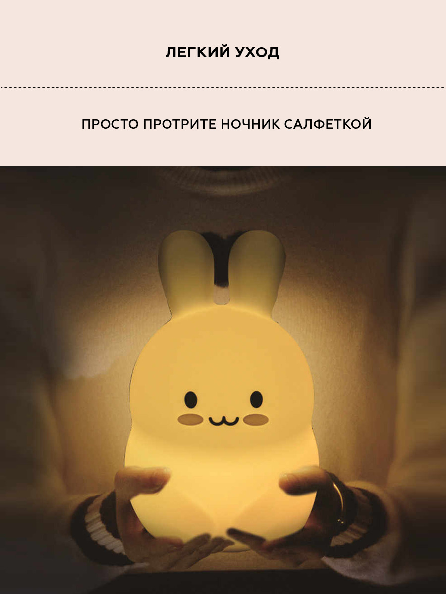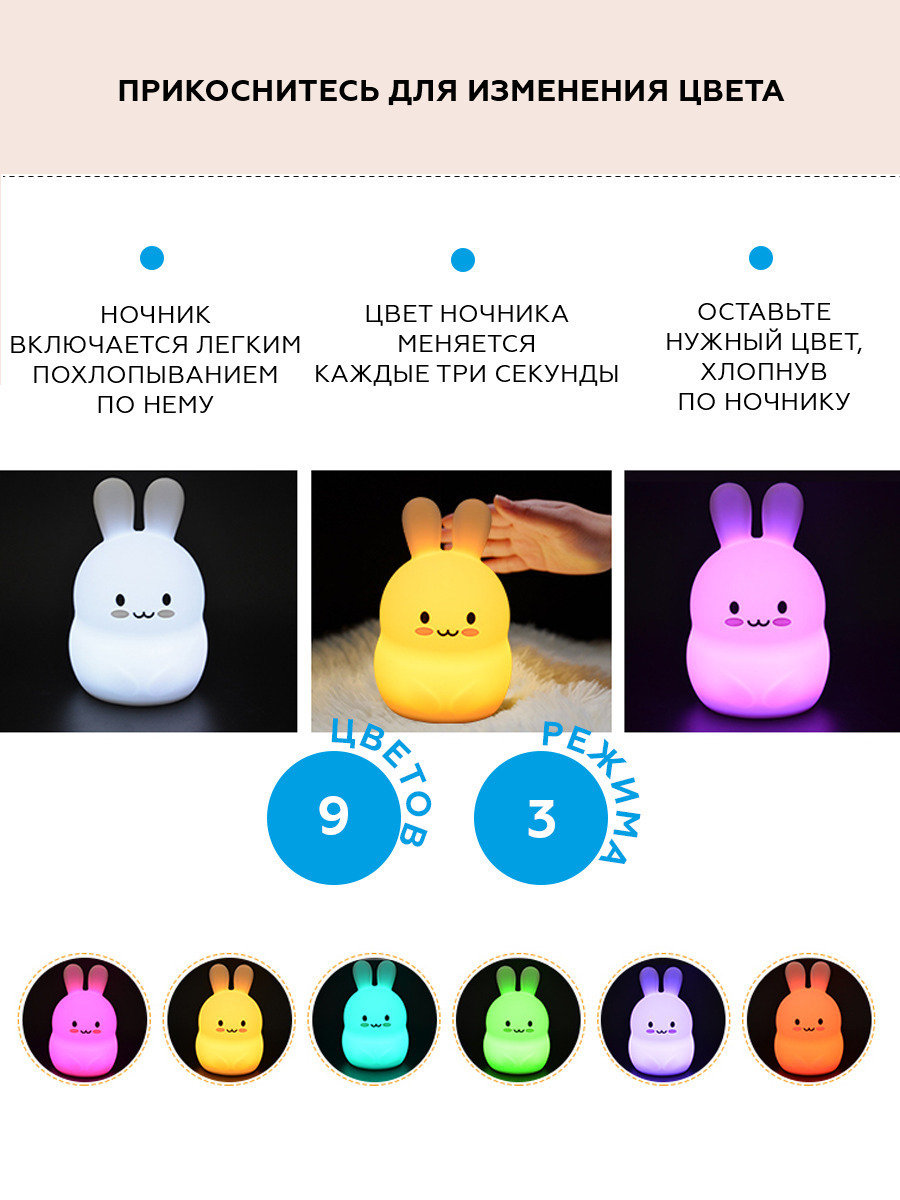 Ночник детский для сна, силиконовая игрушка Заяц, 9 цветов, 3 режима работы, пульт управления