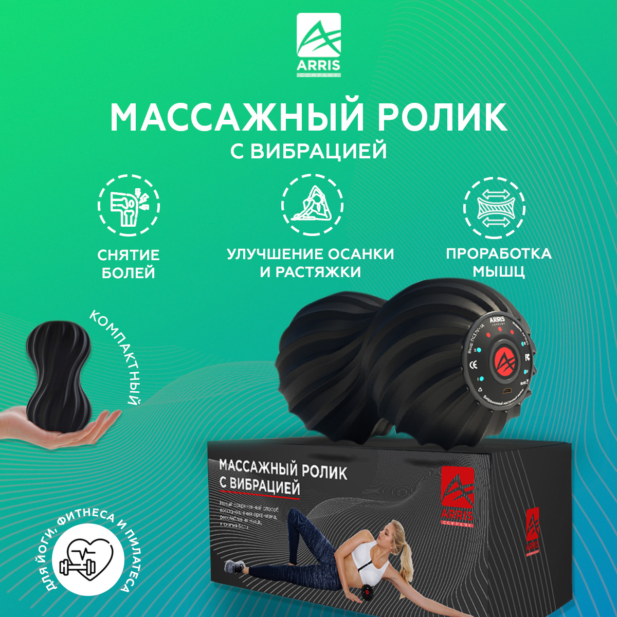 Массажный ролик с вибрацией для йоги, фитнеса и пилатеса