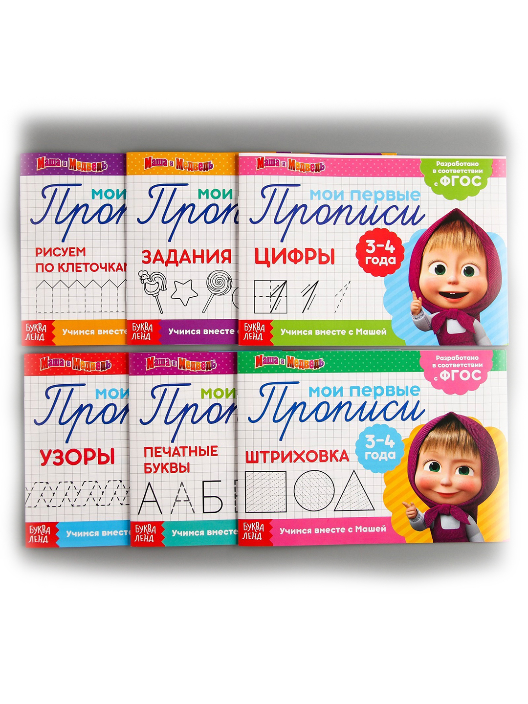 Прописи набор, 6 шт., Маша и Медведь, 20 листов