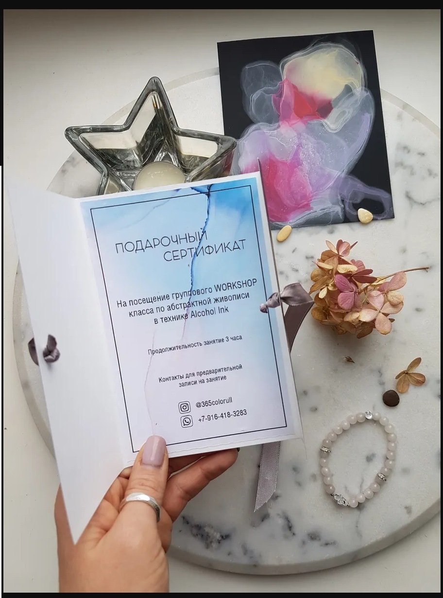 Сертификат на посещение мастер класса по созданию "Картины спиртовыми чернилами"