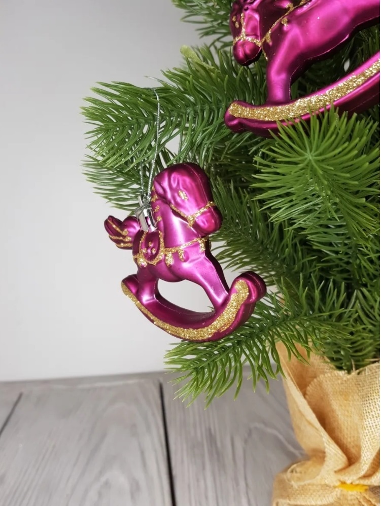 Елочные игрушки на елку "Лошадка" фиолетовая 3 шт