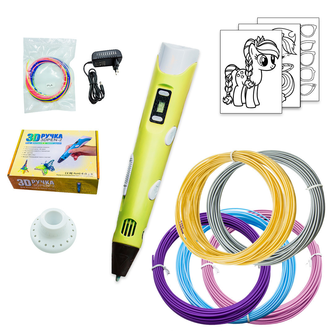 3D ручка 3Dpen2 желтая с набором дополнительного пластика "РАДУГА" (большой) и трафаретами