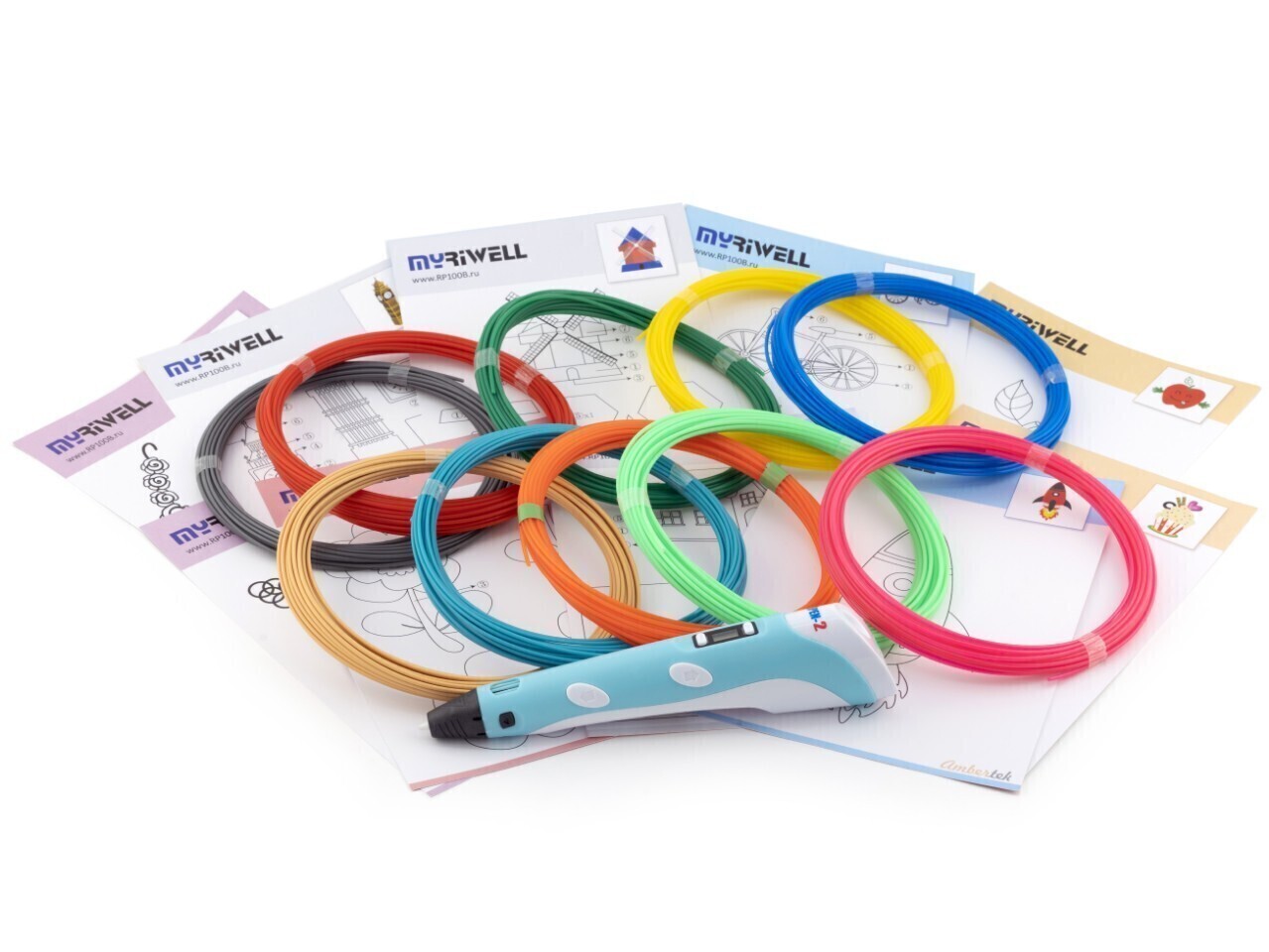 3D ручка 3Dpen2 голубая с набором дополнительного пластика "РАДУГА" (малый) и трафаретами