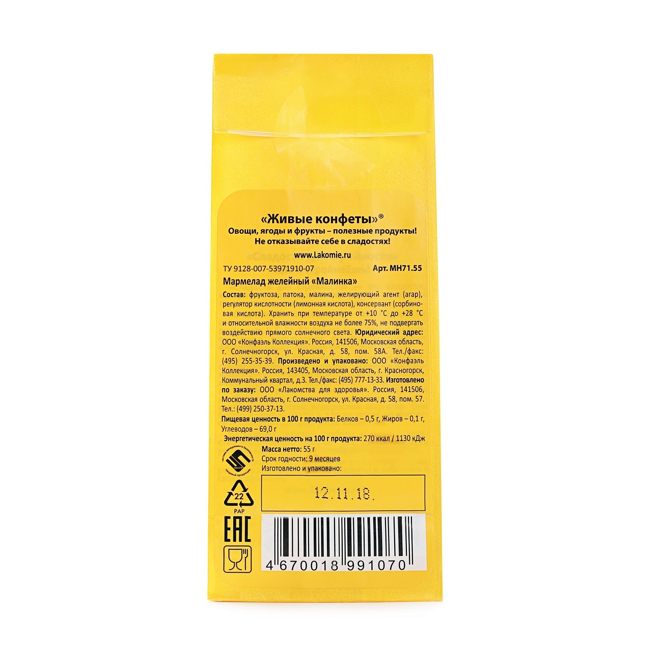 Мармелад желейный Малинка 105 гр Лакомства для здоровья