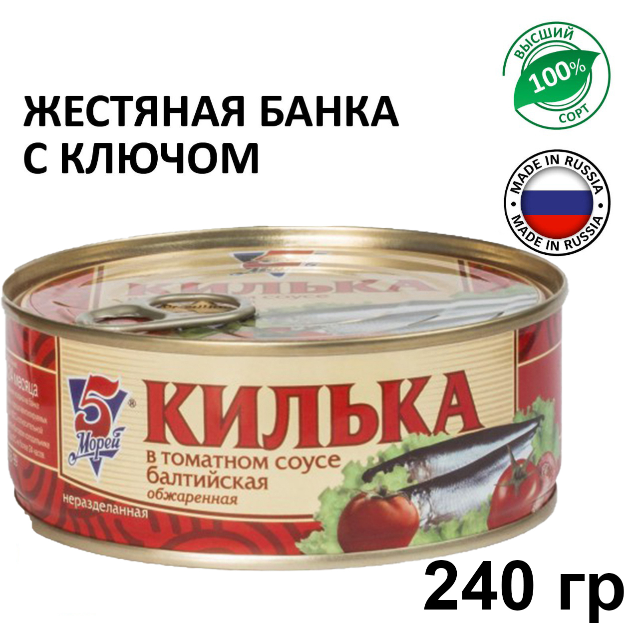 Консервы рыбные 5 Морей - Хамса неразделанная обжаренная в томатном соусе, 230 г - 4 шт