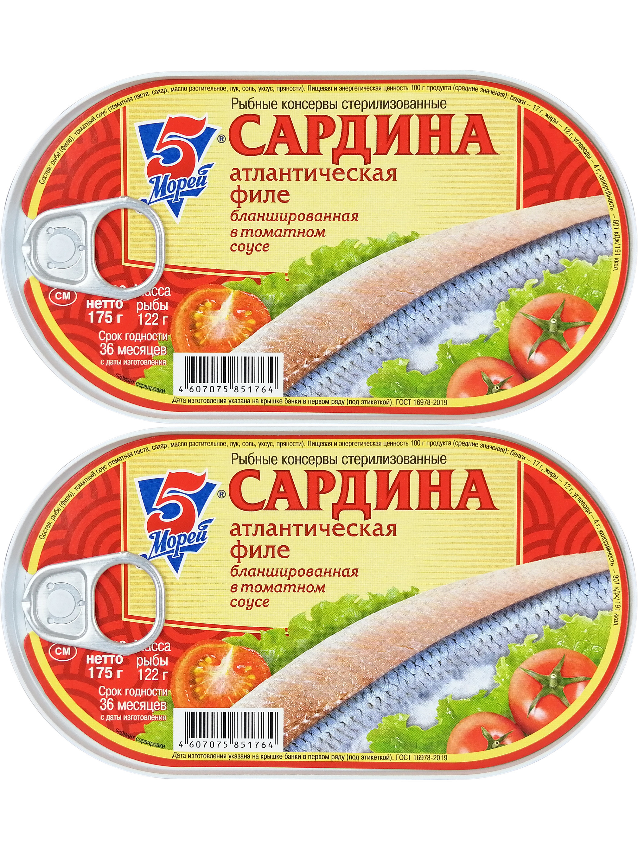 Ассортимент «5 Морей» составляет более 30 наименований рыбных консервов, которые изготавливываются на лучших рыбоперерабатывающих предприятиях отрасли в Латвии и России.