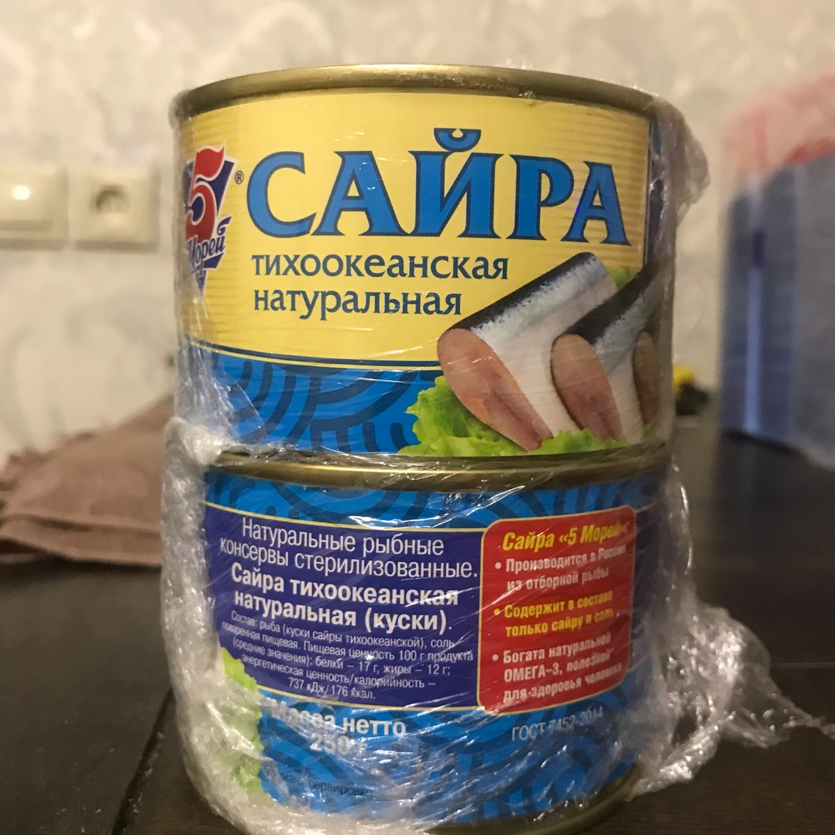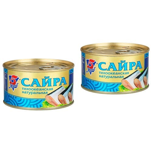 Консервы рыбные, Сайра натуральная Тихоокеанская, 5 морей, 2шт. по 250 гр.