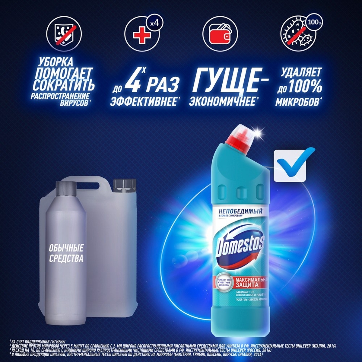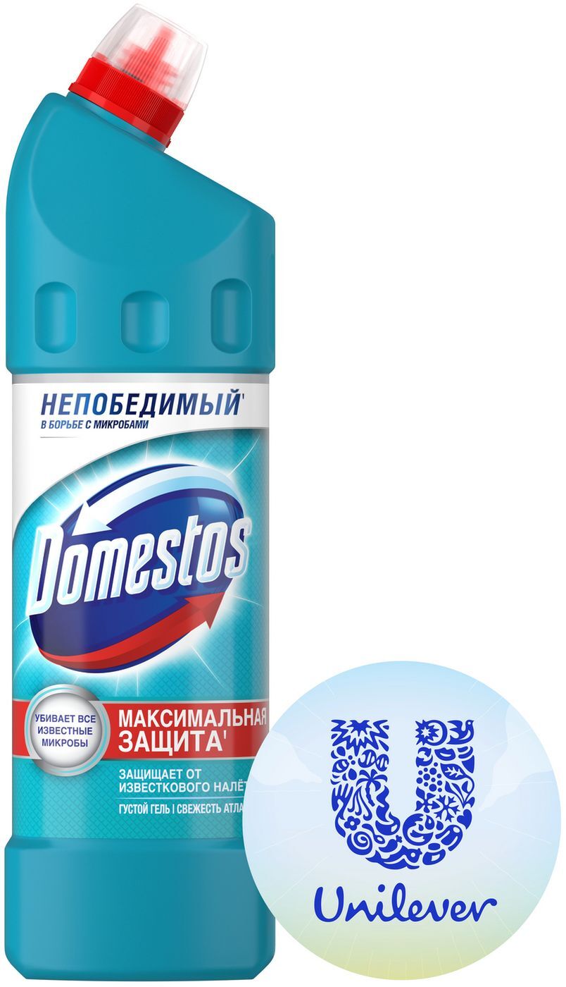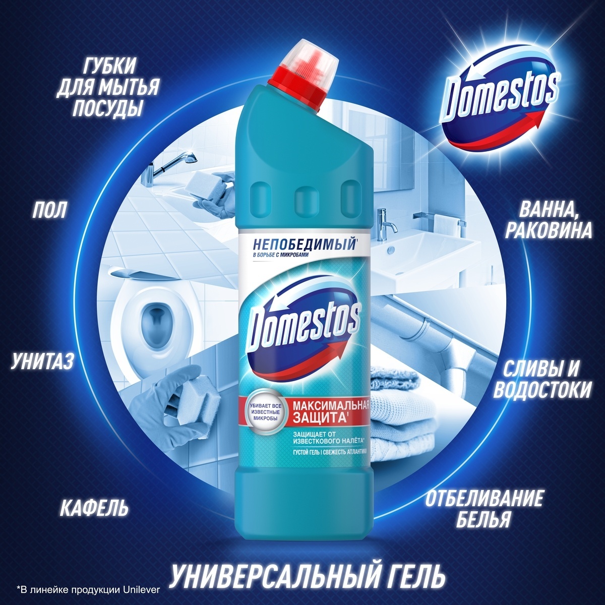 Чистящий гель для унитаза Domestos Свежесть Атлантики, защита от бактерий и вирусов, 1500 мл