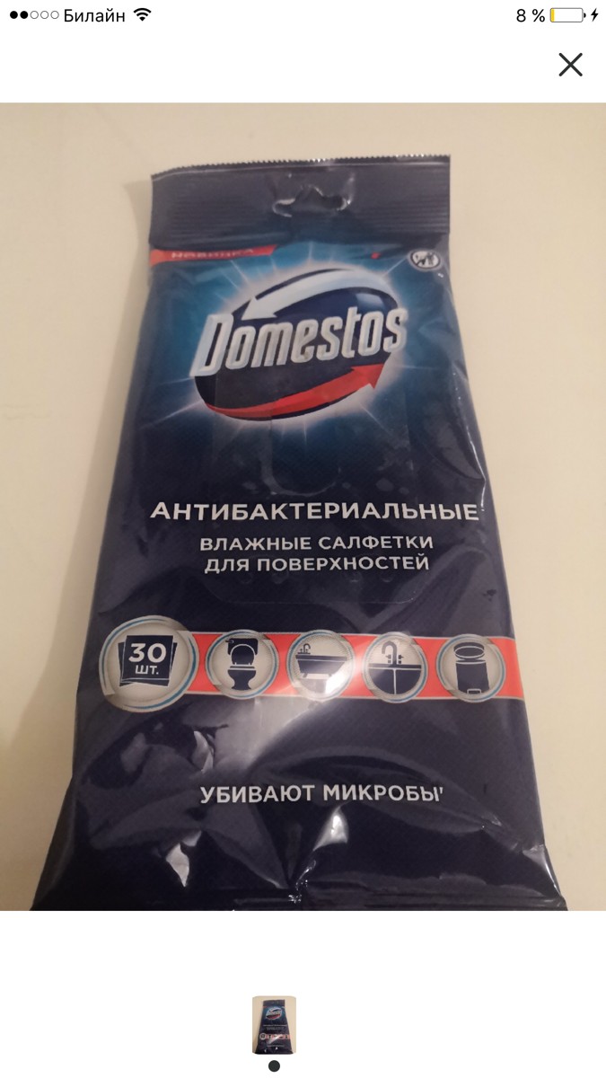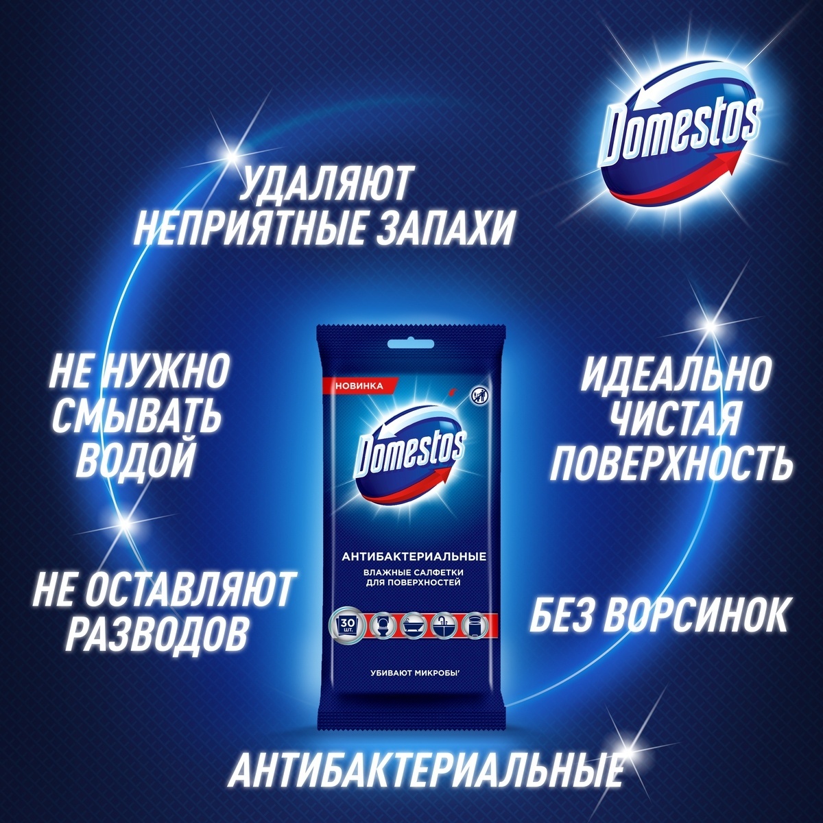 Чистящее средство для уборки Domestos Влажные Салфетки для поверхностей, Антибактериальные, 30 г