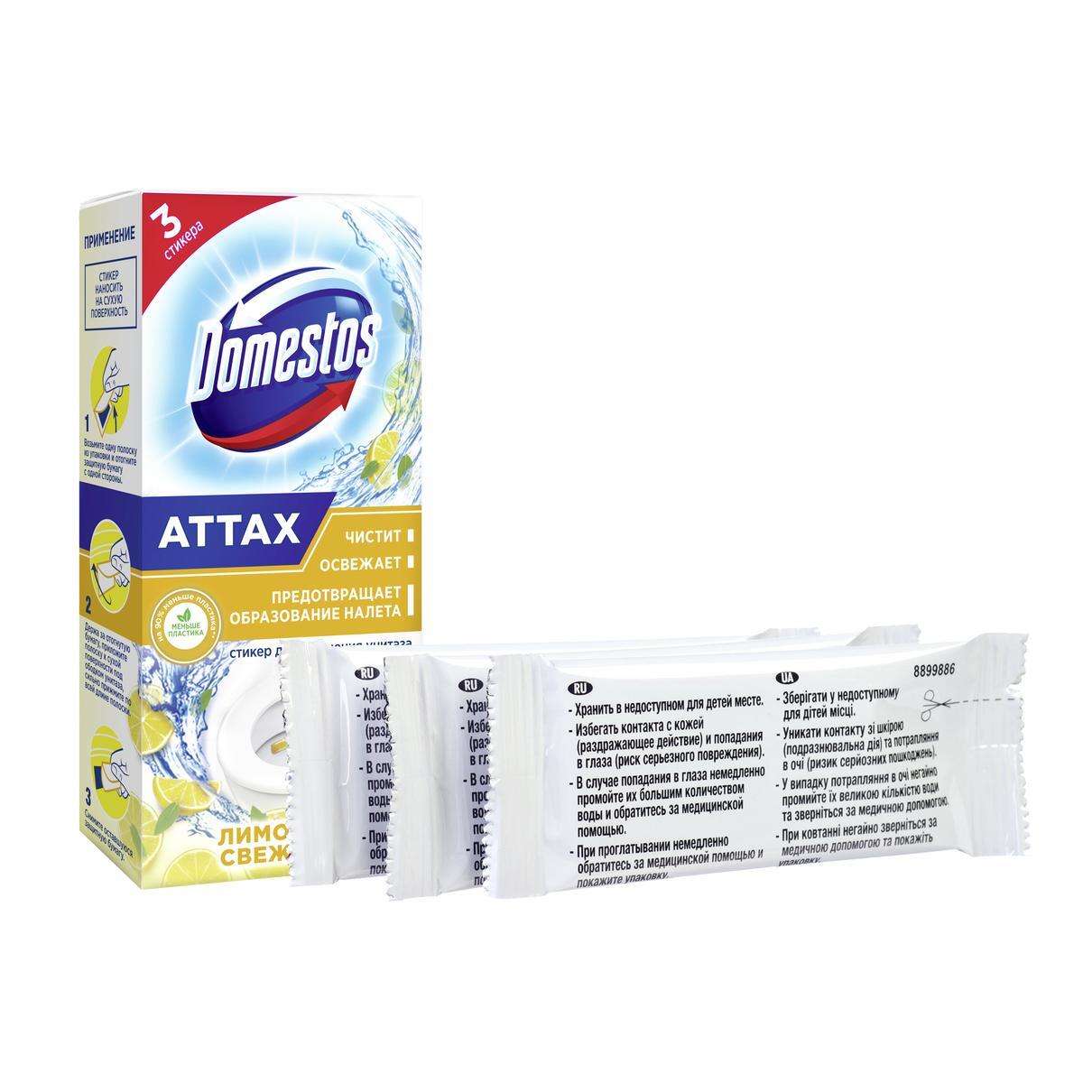 Domestos Attax стикер для очищения унитаза, антиналет, Лимонная свежесть, 3 шт х 10 г