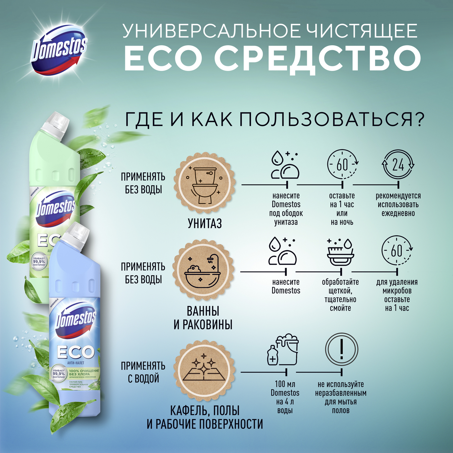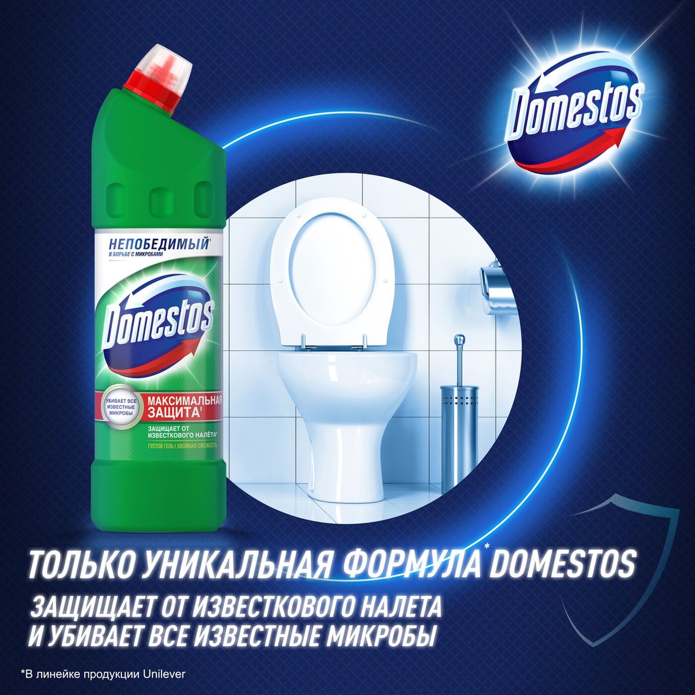 Чистящее средство для туалета и ванной Domestos Ультра Блеск, эффективное отбеливание, 1500 мл