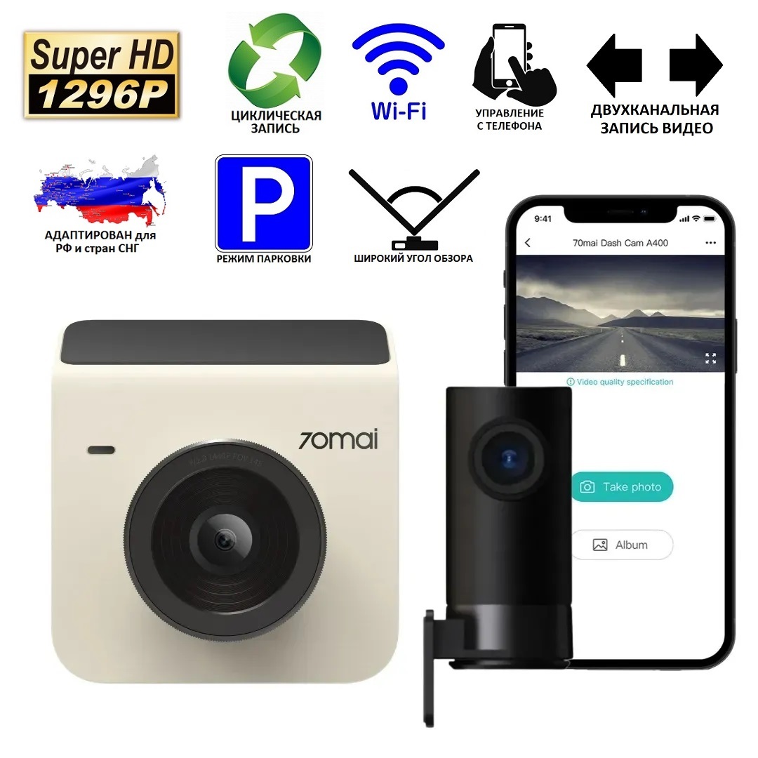 Видеорегистратор 70Mai Dash Cam A400-1 (White) + Камера RC09 Русская версия