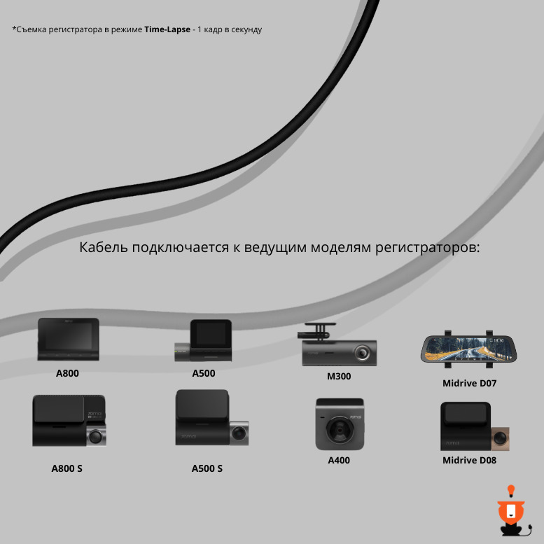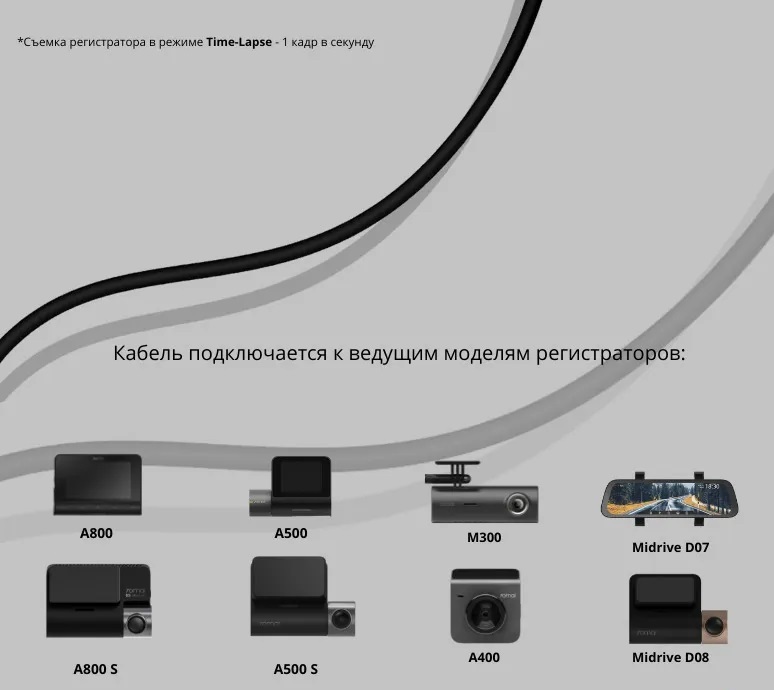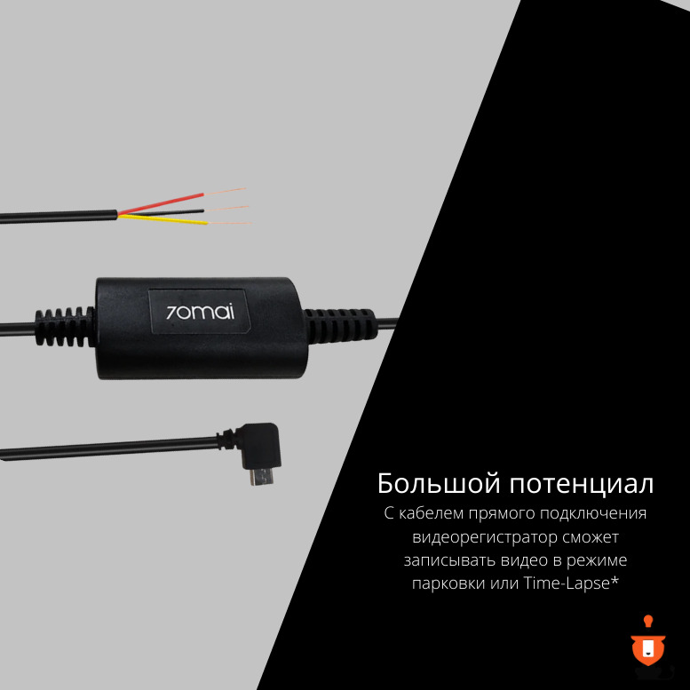 Кабель для парковочного режима или питания видеорегистратора 70mai от бортовой системы автомобиля