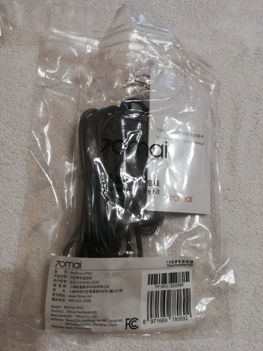 Кабель режима парковки Xiaomi 70 mai Hardware Kit (Midrive UP02)