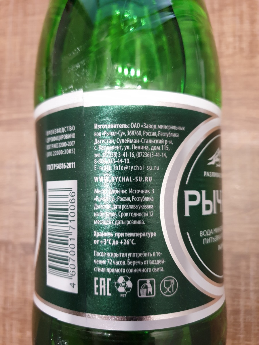 Минеральная лечебно-столовая вода Рычал-Су газированная, стекло