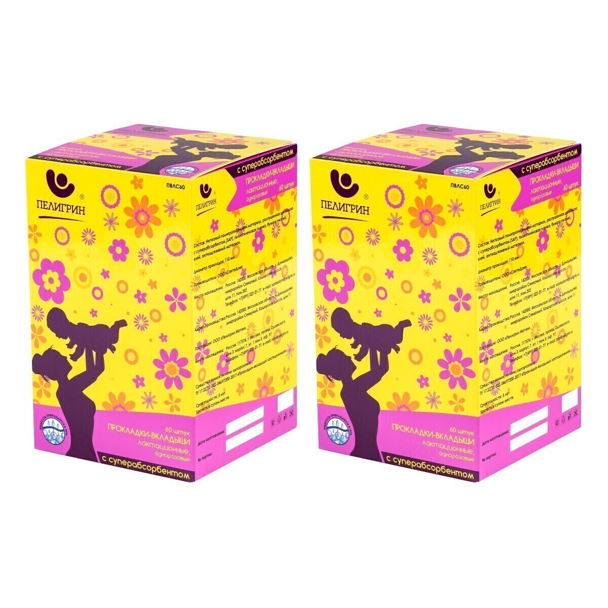 2 уп. х 60 шт. Прокладки-вкладыши для груди Пелигрин лактационные одноразовые с суперабсорбентом