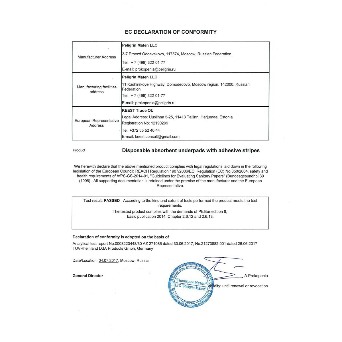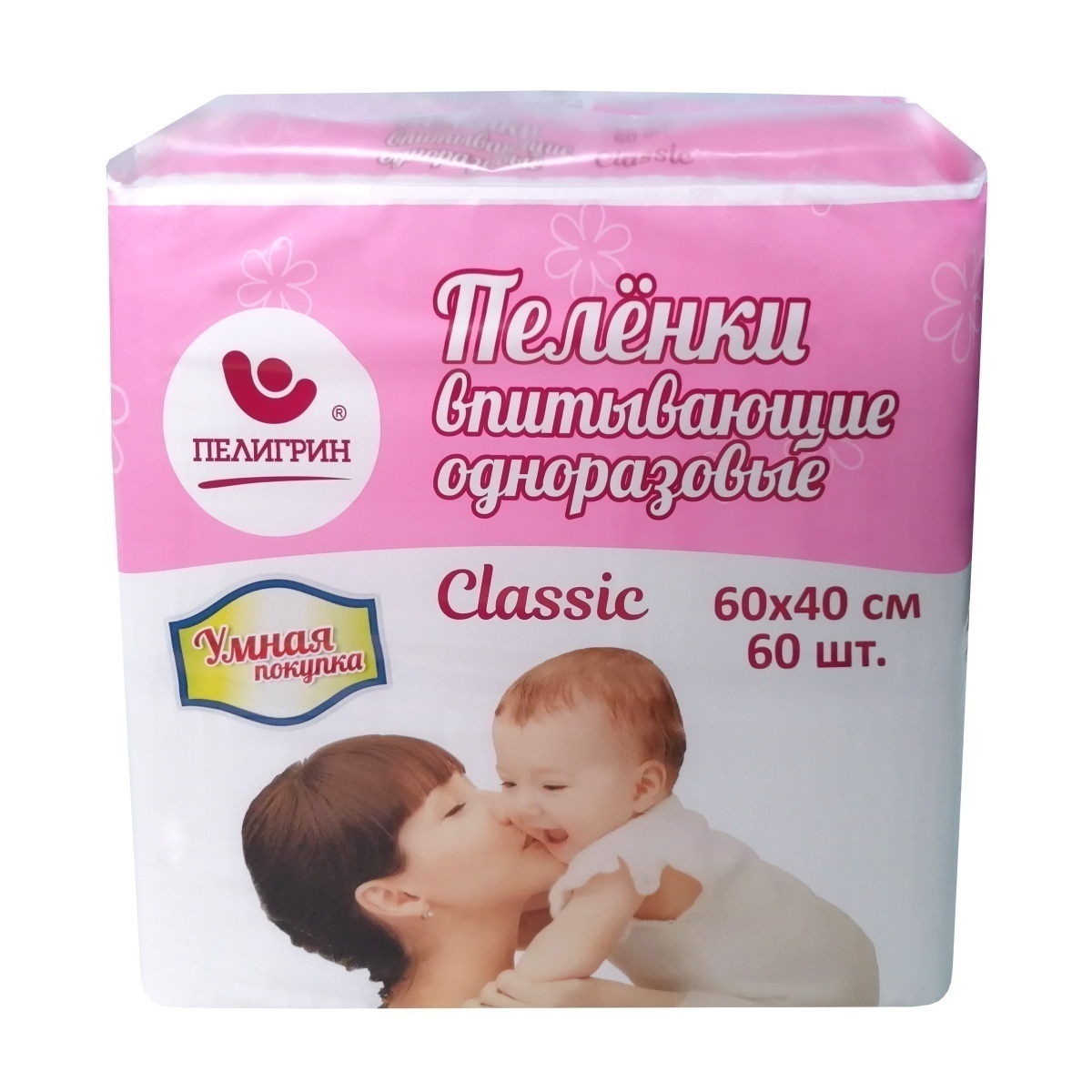 Пеленки одноразовые впитывающие Пелегрин 60х40 см, 60 шт. Classic