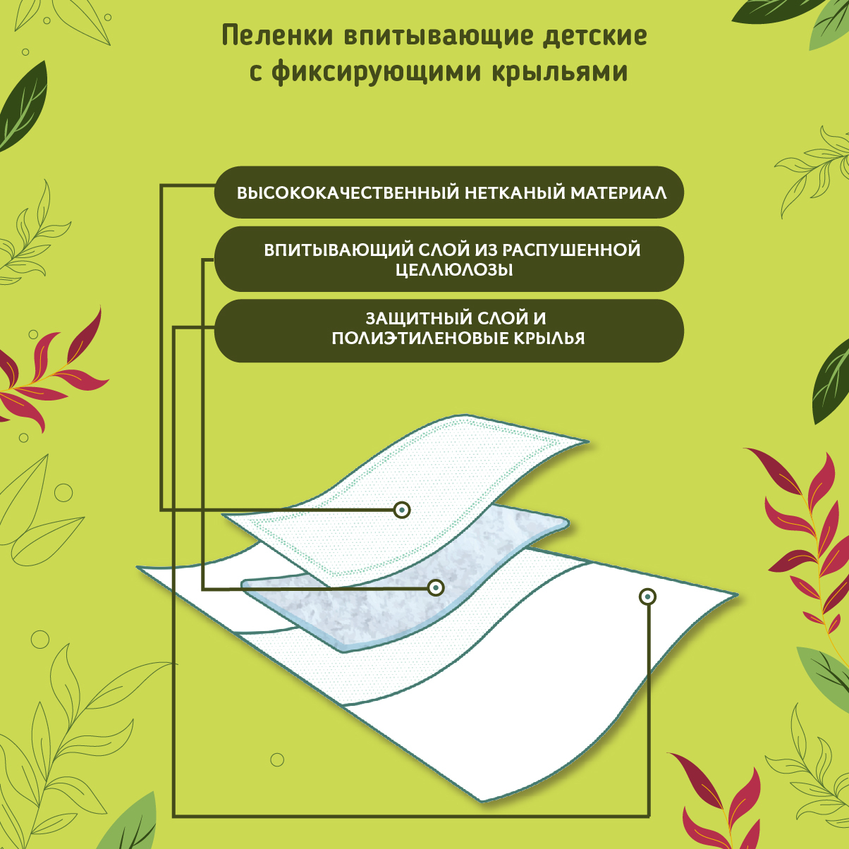 Пеленки одноразовые впитывающие Пелигрин, с липким фиксирующим слоем, 60х90 см, 10 шт