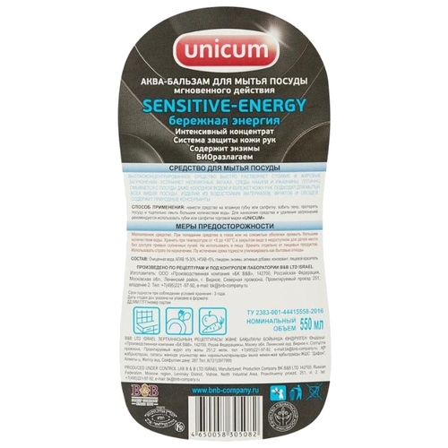Unicum Аква-бальзам для мытья посуды Sensitive energy