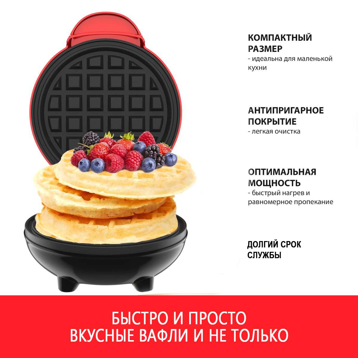 Вафельница ABBA MINI WAFFLE, красный