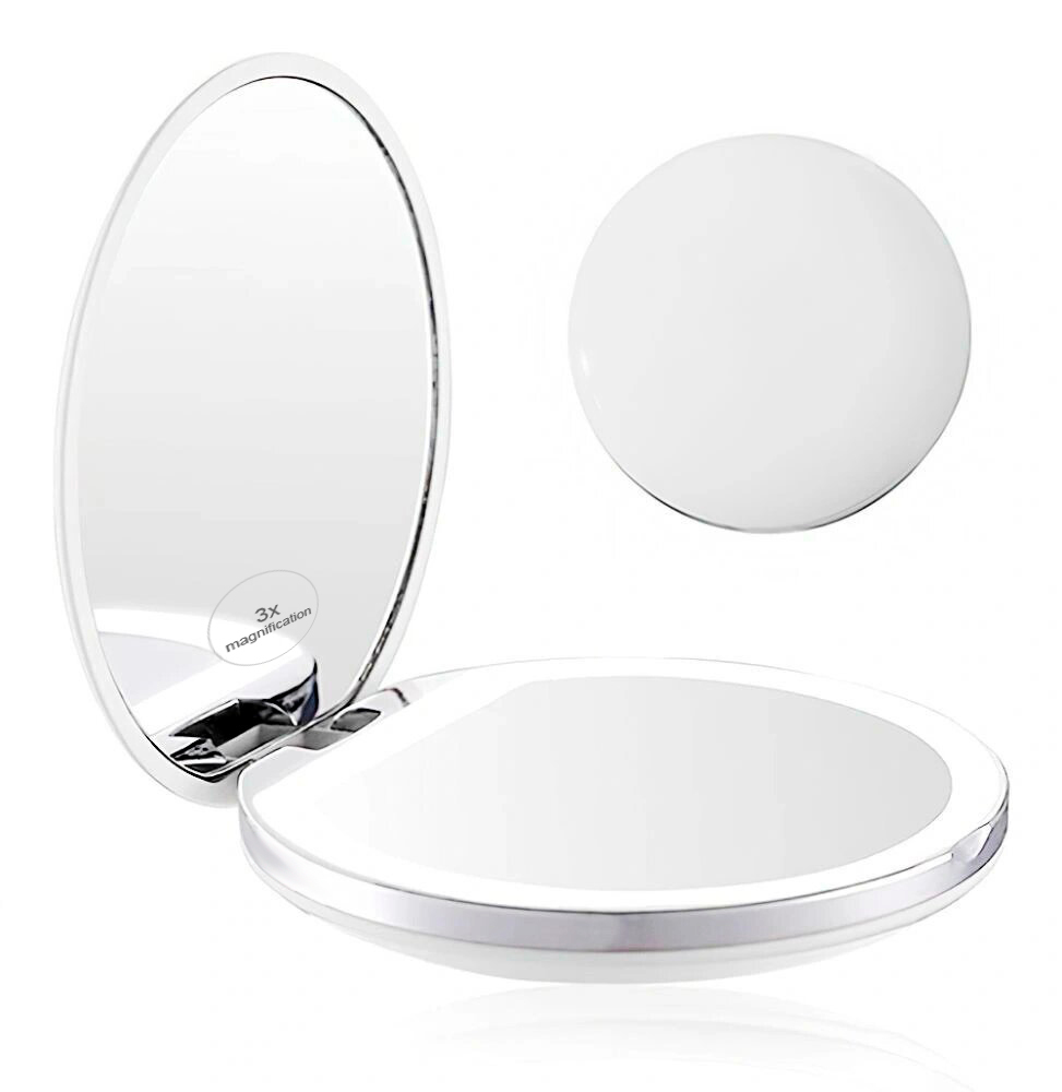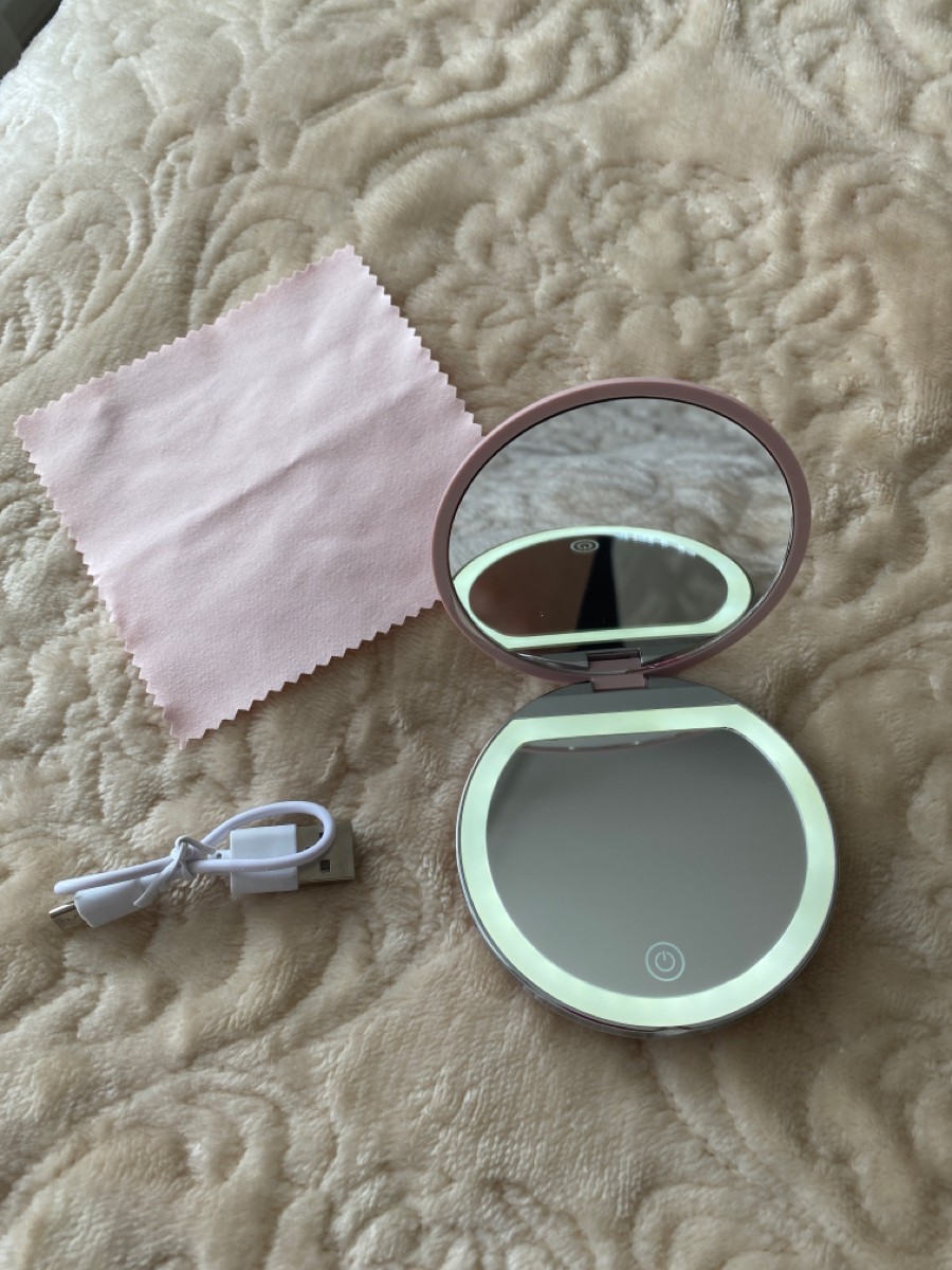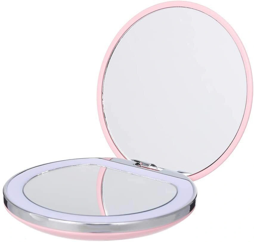 Зеркало с подсветкой для макияжа зеркало косметическое с увеличением зеркальце карманное розовое