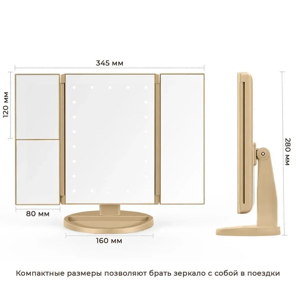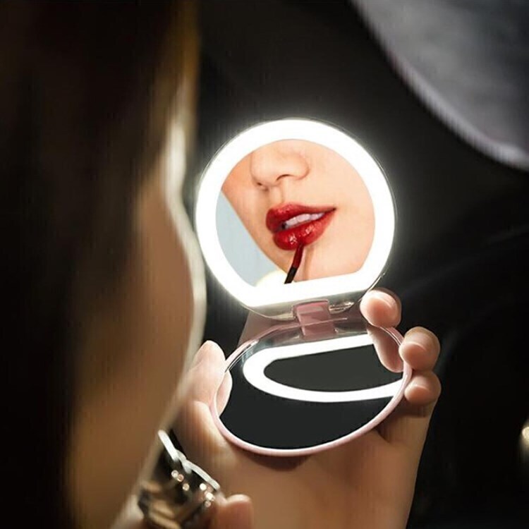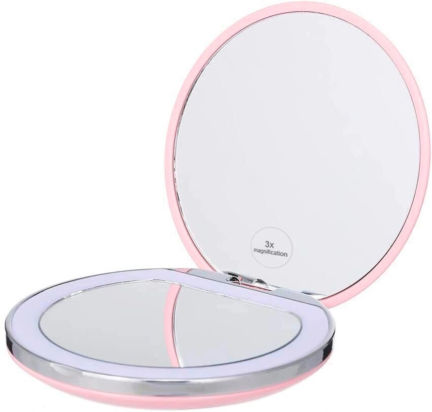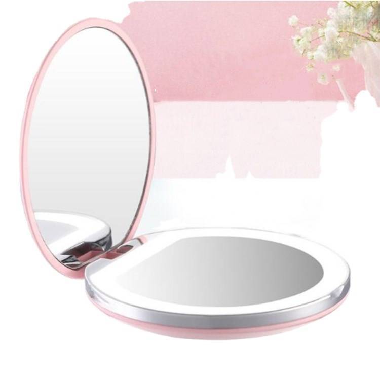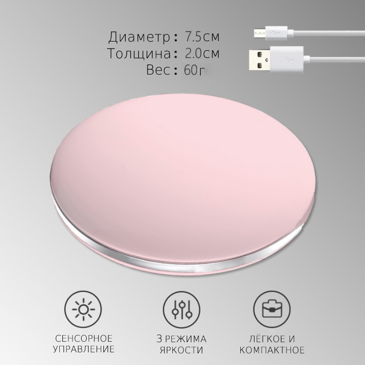 Зеркало с подсветкой для макияжа зеркало косметическое с увеличением зеркальце карманное розовое