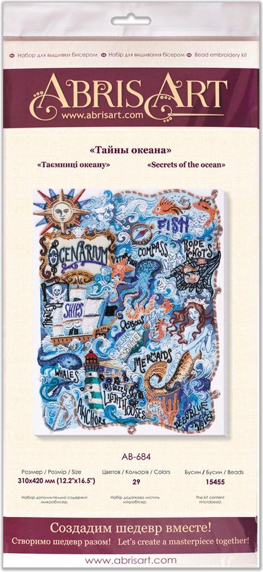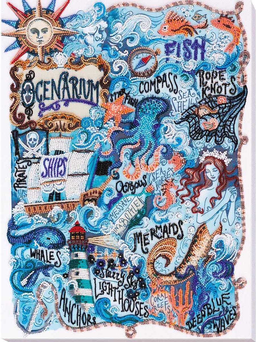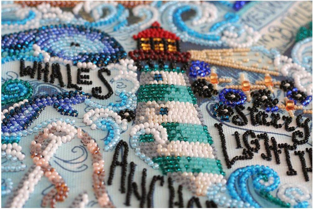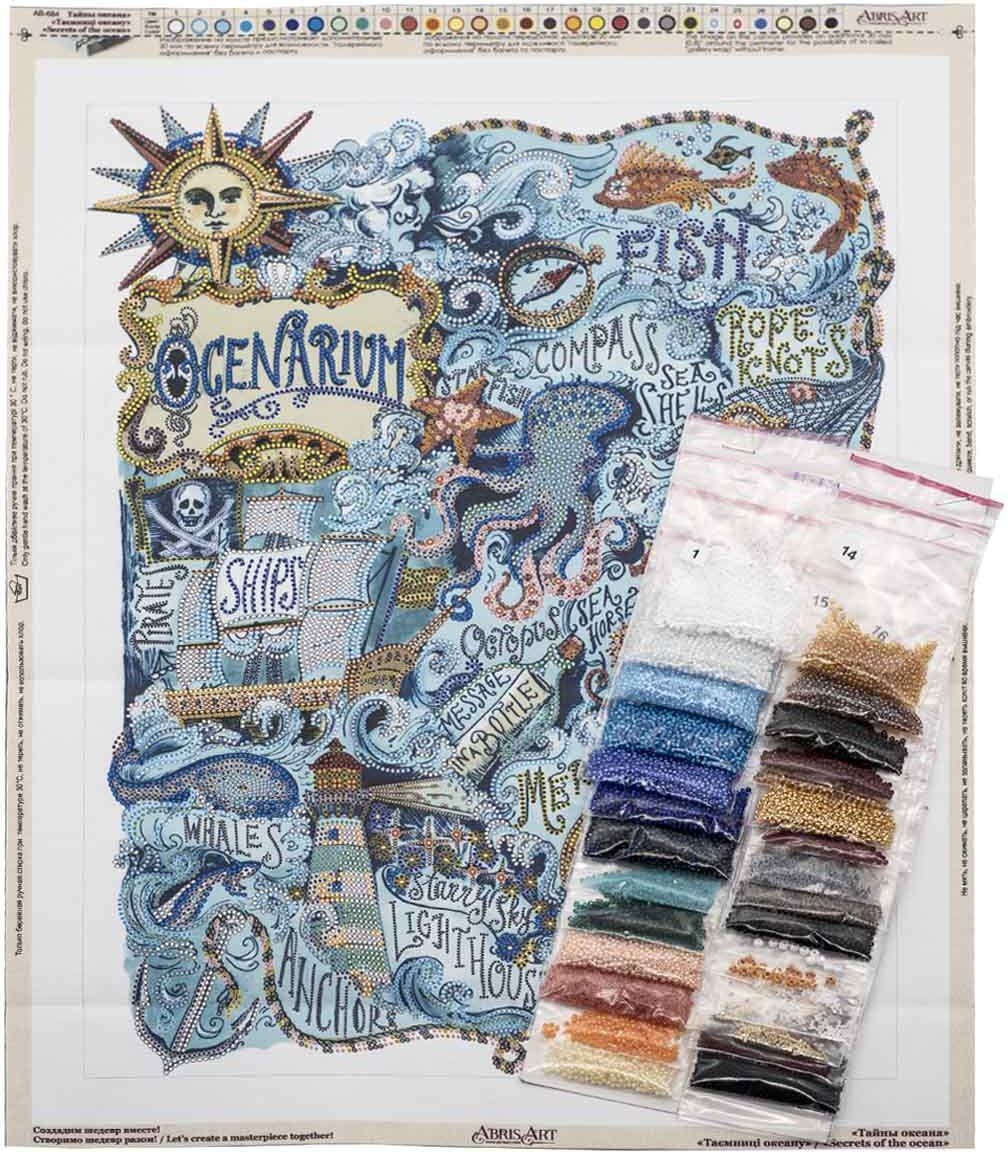 Набор для вышивания бисером Абрис Арт Тайны океана, 31х42 см / Вышивка бисером / море рыбы маяк