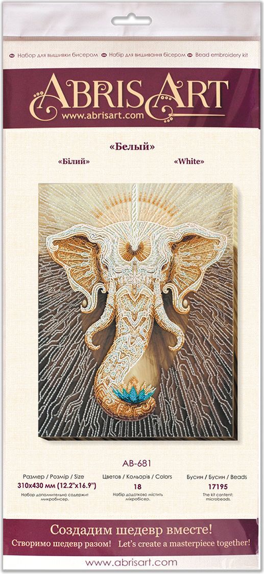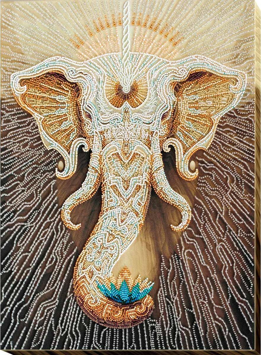 Набор для вышивания бисером Абрис Арт Белый, 31х43 см / Вышивка бисером / слон