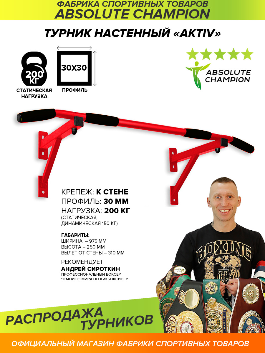 Турник Absolute Champion "Чемпион", 4690337033237, черный