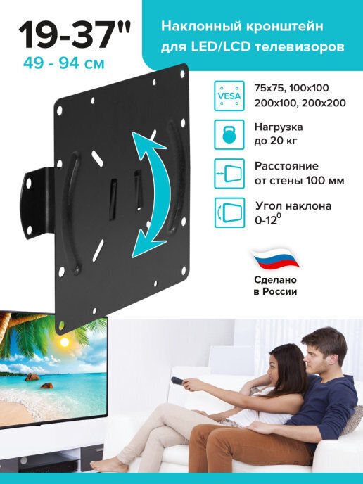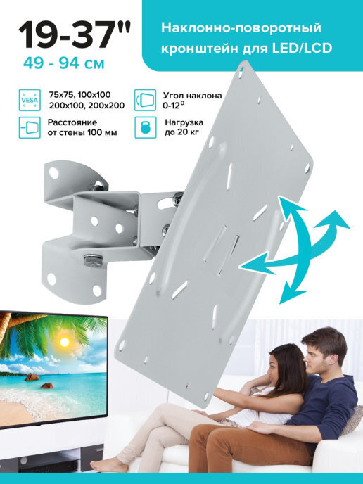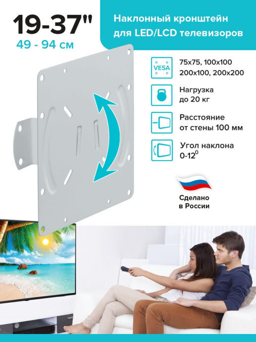 Кронштейн для ТВ Наклонный 20кг 19 37" белый Absolute Comfort. Крепление (держатель) для тв на стену vesa. Кронштейн для телевизора настенный.