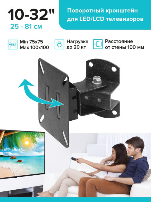 Кронштейн для ТВ Поворотный 20кг 10*32" черный
