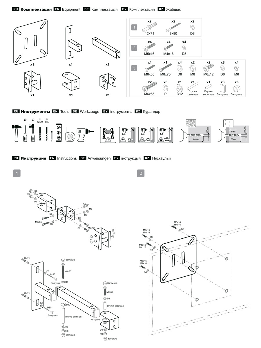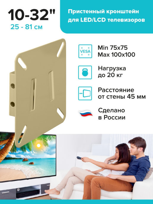 Кронштейн для ТВ Пристенный 20кг 10*32" бежевый