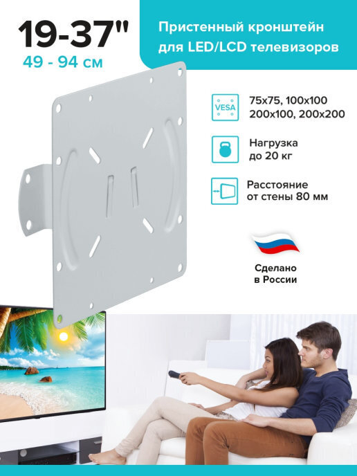 Кронштейн для ТВ Пристенный 20кг 19 37" белый Absolute Comfort. Крепление (держатель) для тв на стену vesa. Кронштейн для телевизора настенный.