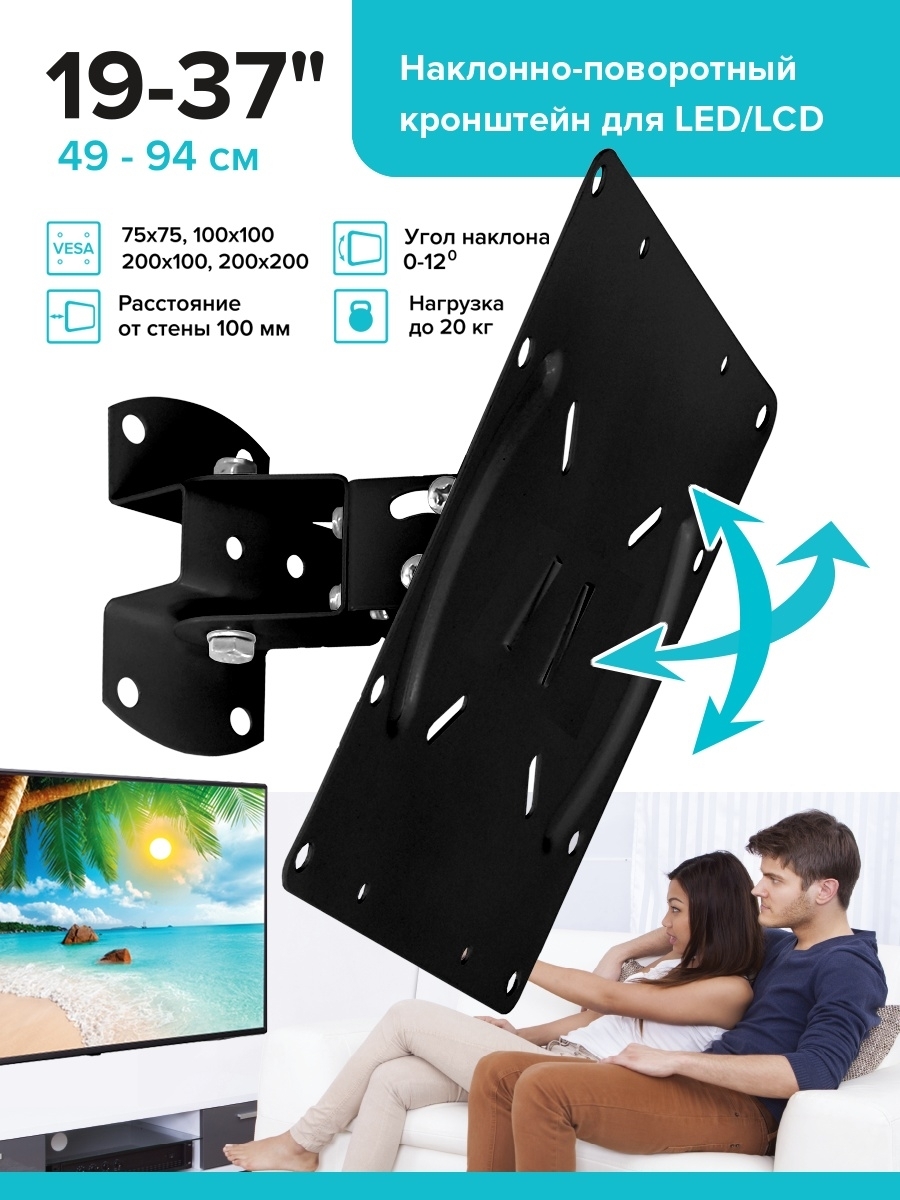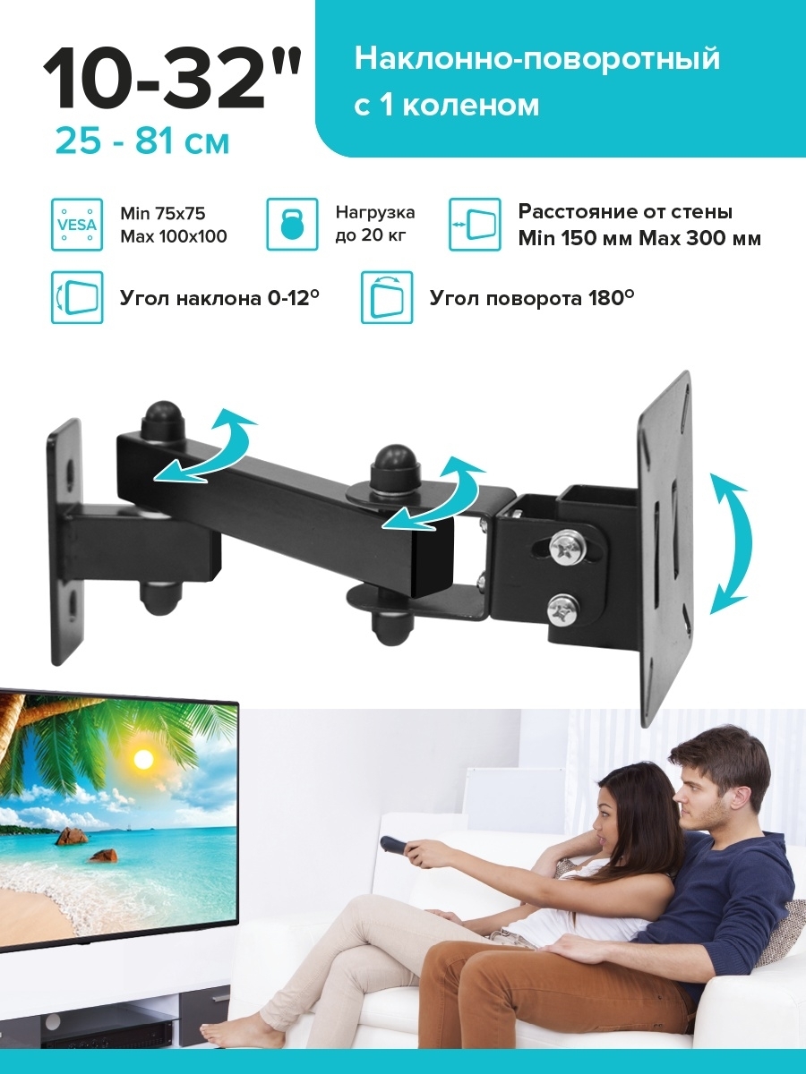 Кронштейн для ТВ Наклонно-поворотный 20кг 10*32 черный