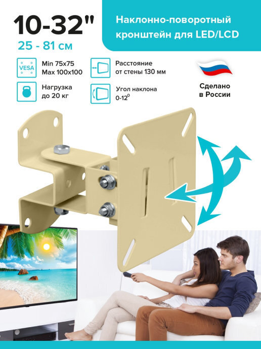 Кронштейн для ТВ Наклонно-поворотный 20кг 10*32" бежевый
