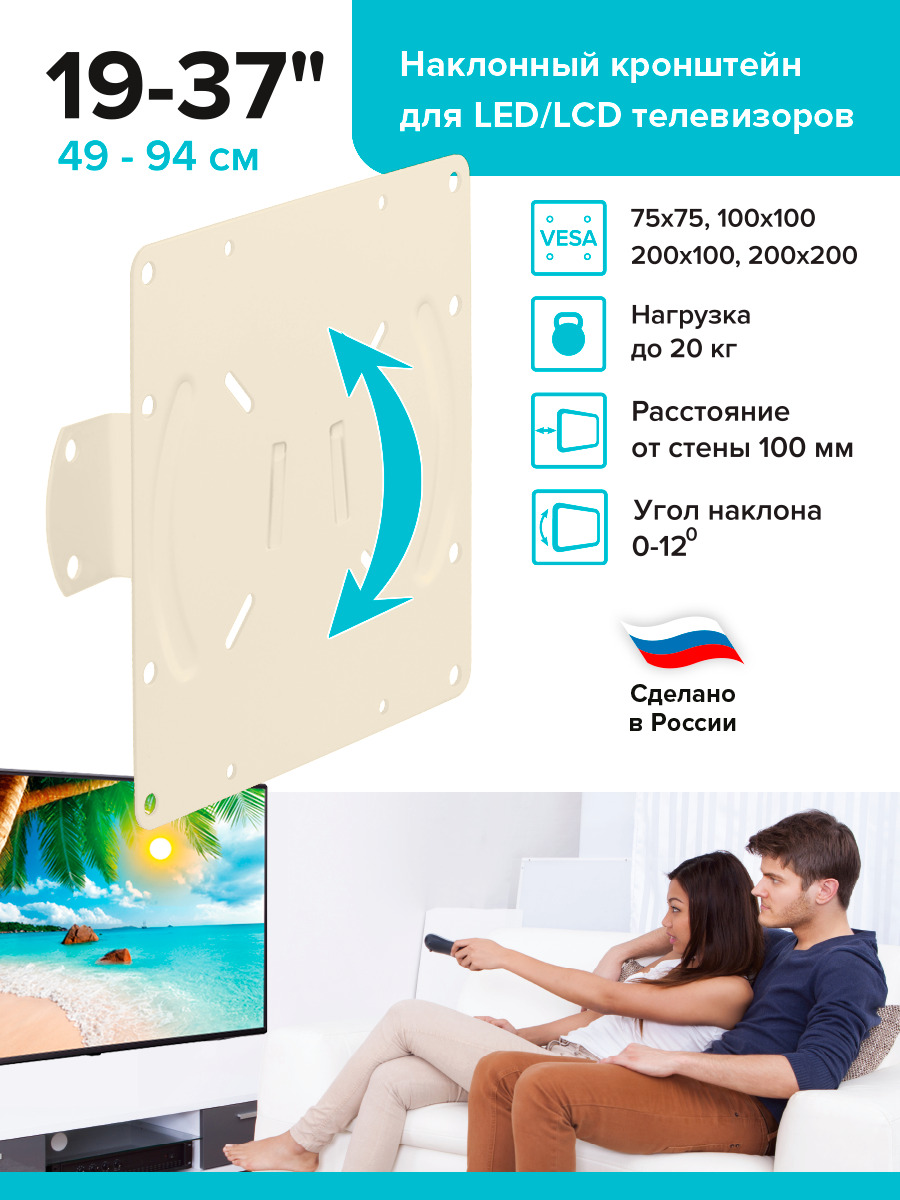 Кронштейн для телевизора настенный Наклонный 20кг 10-32 бежевый. Absolute Comfort. Держатель для телевизора vesa. Крепление для телевизора.