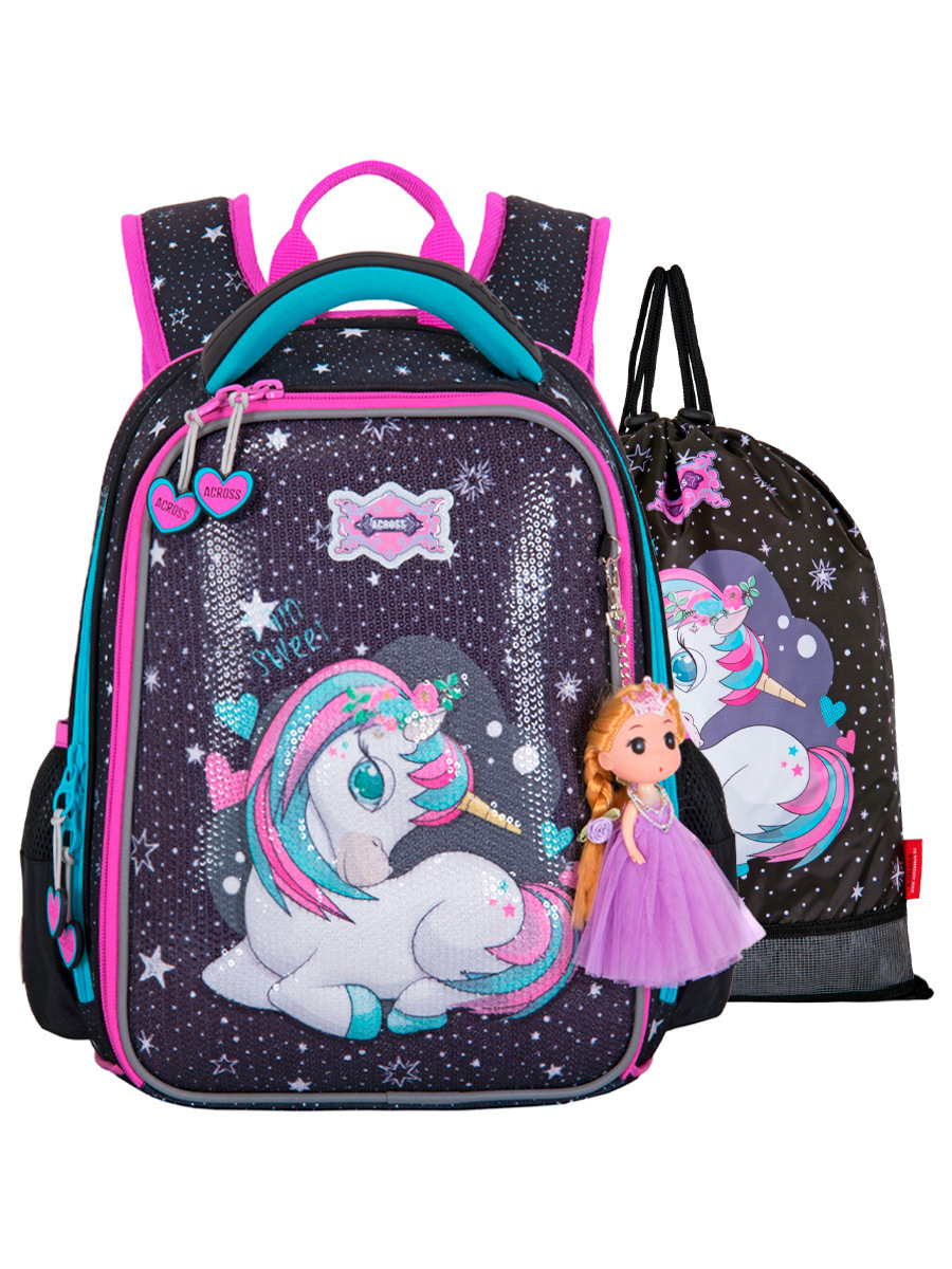 Рюкзак школьный ортопедический для девочки ACROSS,с мешочком для обуви,пеналом и брелоком в подарок