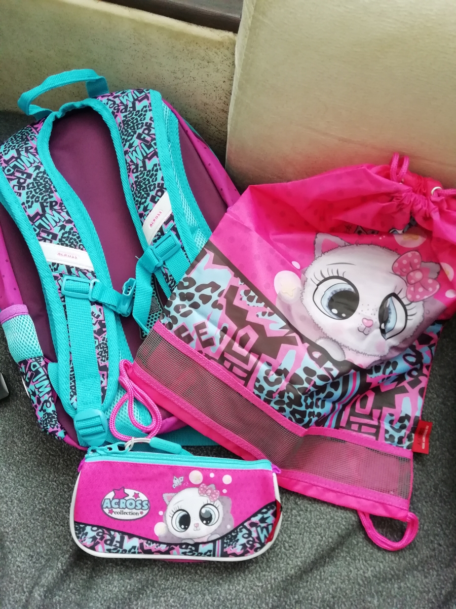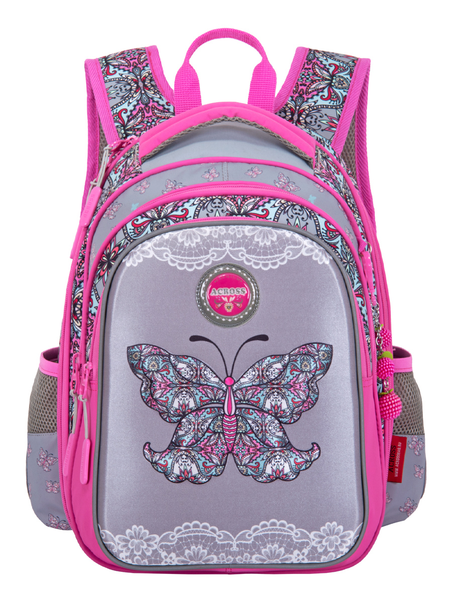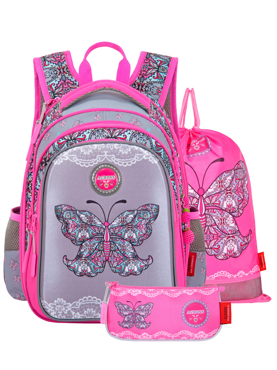 Рюкзак школьный ортопедический для девочки ACROSS, с мешочком для обуви,пеналом и брелоком в подарок