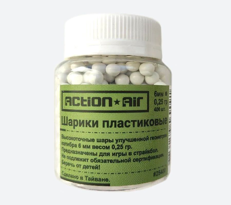 Шарики для пневматики, Пули для пневматики Action Air 25400, белый