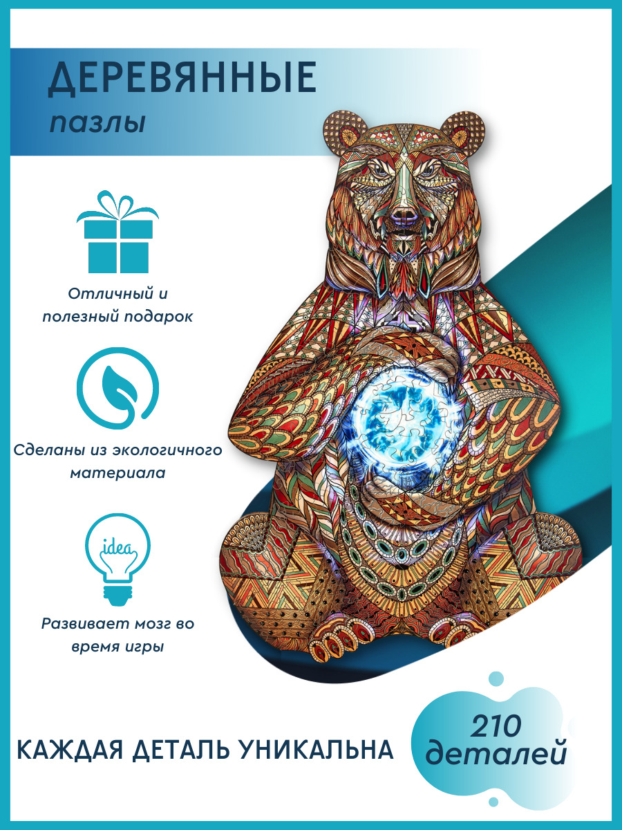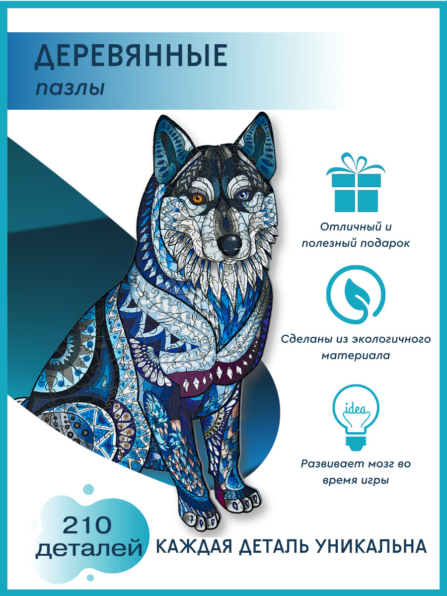 Деревянные пазлы для детей и взрослых/головоломка/Полярный Хаски 30x38 см /уникальных деталей 210