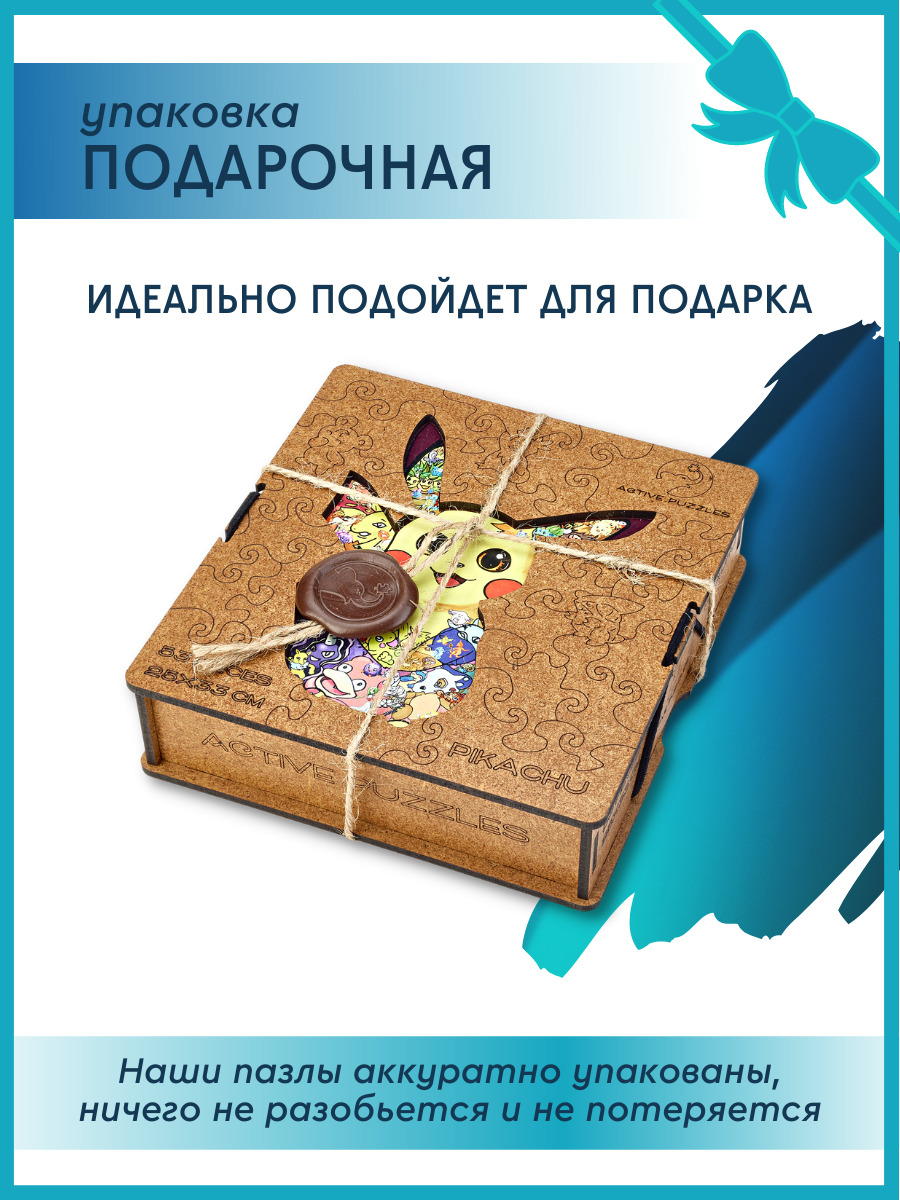 Деревянный пазл для детей и взрослых / Active Puzzles Пикачу / головоломка / 33х25 см, 53 детали
