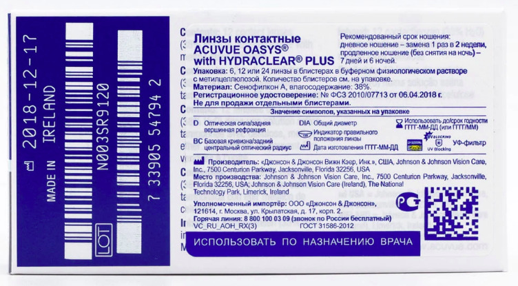 ACUVUE Контактные линзы OASYS with HYDRACLEAR PLUS (12 линз), 12 шт., -5.00 / 8.4/ 2 недели