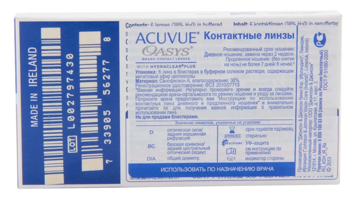 ACUVUE Контактные линзы OASYS WITH HYDRACLEAR PLUS, 6 шт., -7.00 / 8.4/ 2 недели